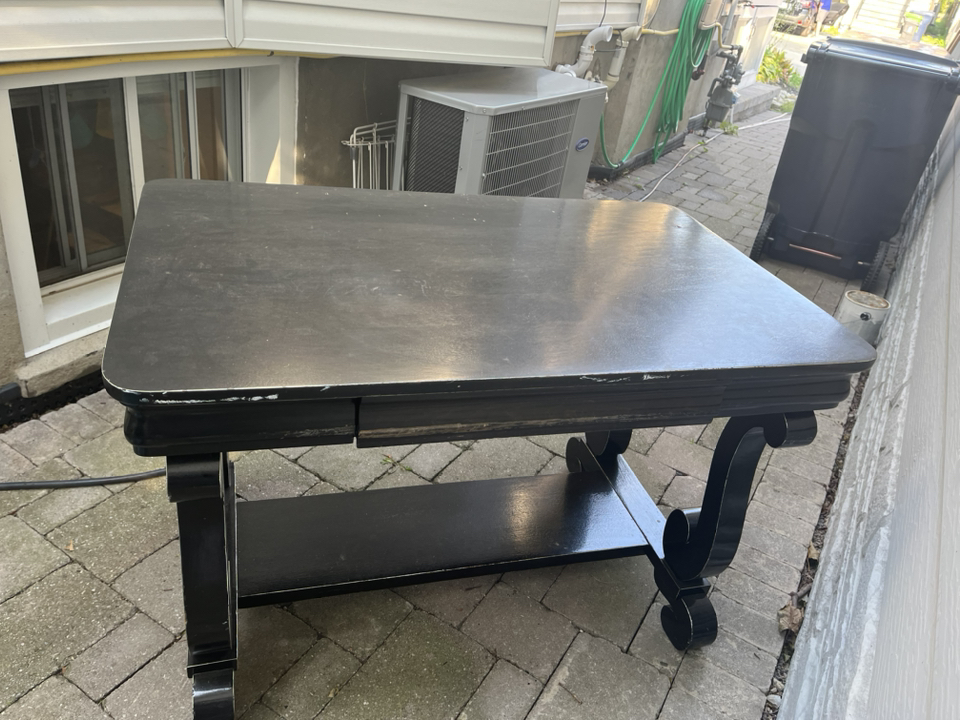 This is a beautiful desk or large table with a drawer. It can use a new paint or varnish coat. It is very heavy. Will need a vehicle to put it in and at least two strong people to lift it. Pick up near coxwell and Gerrard.