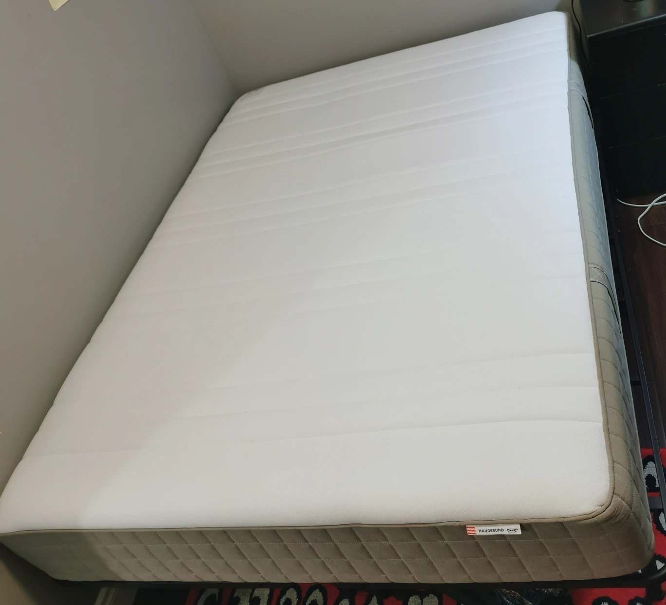 IKEA double frame + mattress. Only used for a year and it was protected by a good mattress cover the whole time