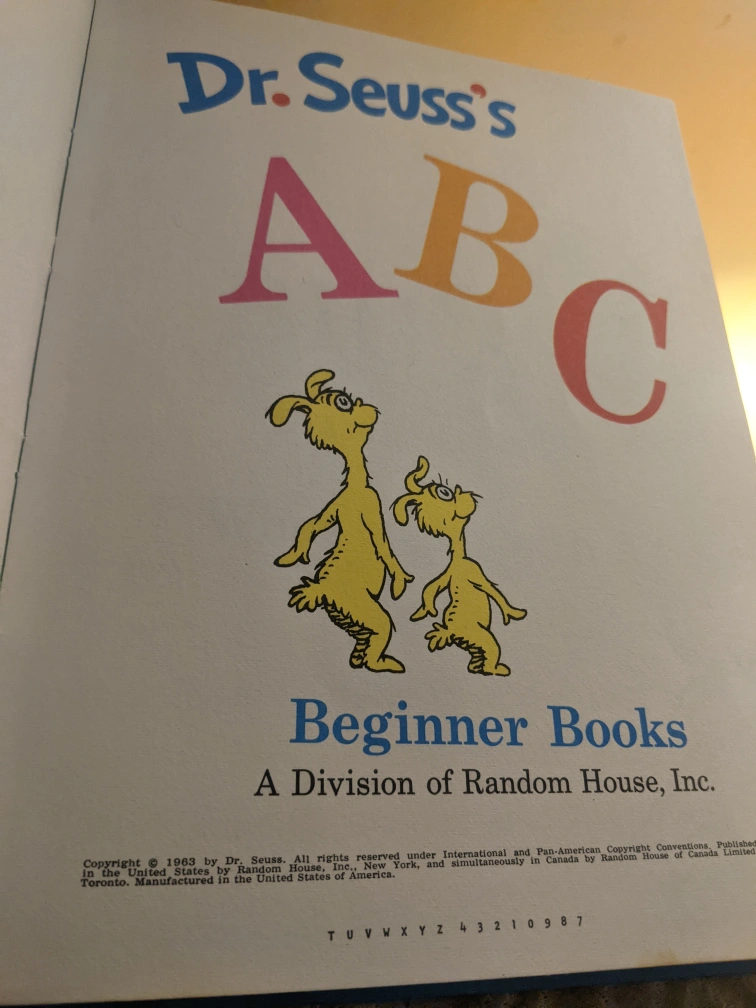 An original 1963, Book Club Edition of Dr Seuss's ABC.