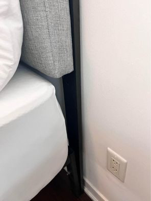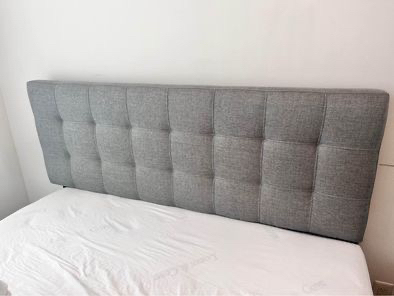 70GRAY queen size headboard and BLACK metal bedframe (pls read listing for info) - pick up only! PICK UP ONLY in St Clair and Spadina area. The bed is already taken apart to ease in transport. Gray fabric headboard and separate black metal bedframe - both in great condition, about 3 years old. No box spring needed. Headboard and bed frame attached by screws. Headboard measurements: 52.5'' H X 3.5'' D Headboard link - https://www.wayfair.ca/furniture/pdp/modway-oliver-upholstered-headboard-zipc3956.html?csnid=61514E11-B6BC-4352-BA82-ED40BA26DB9E&_emr=36771710-9075-4d1f-bab1-446ead5e592c&_eml=3054bf54-a45c-4ca1-8c59-c53586945db1&refid=EML_41061&source=graymatter Bedframe link - https://www.amazon.ca/Platform-Mattress-Foundation-Boxspring-Support/dp/B01AB689F0?th=1