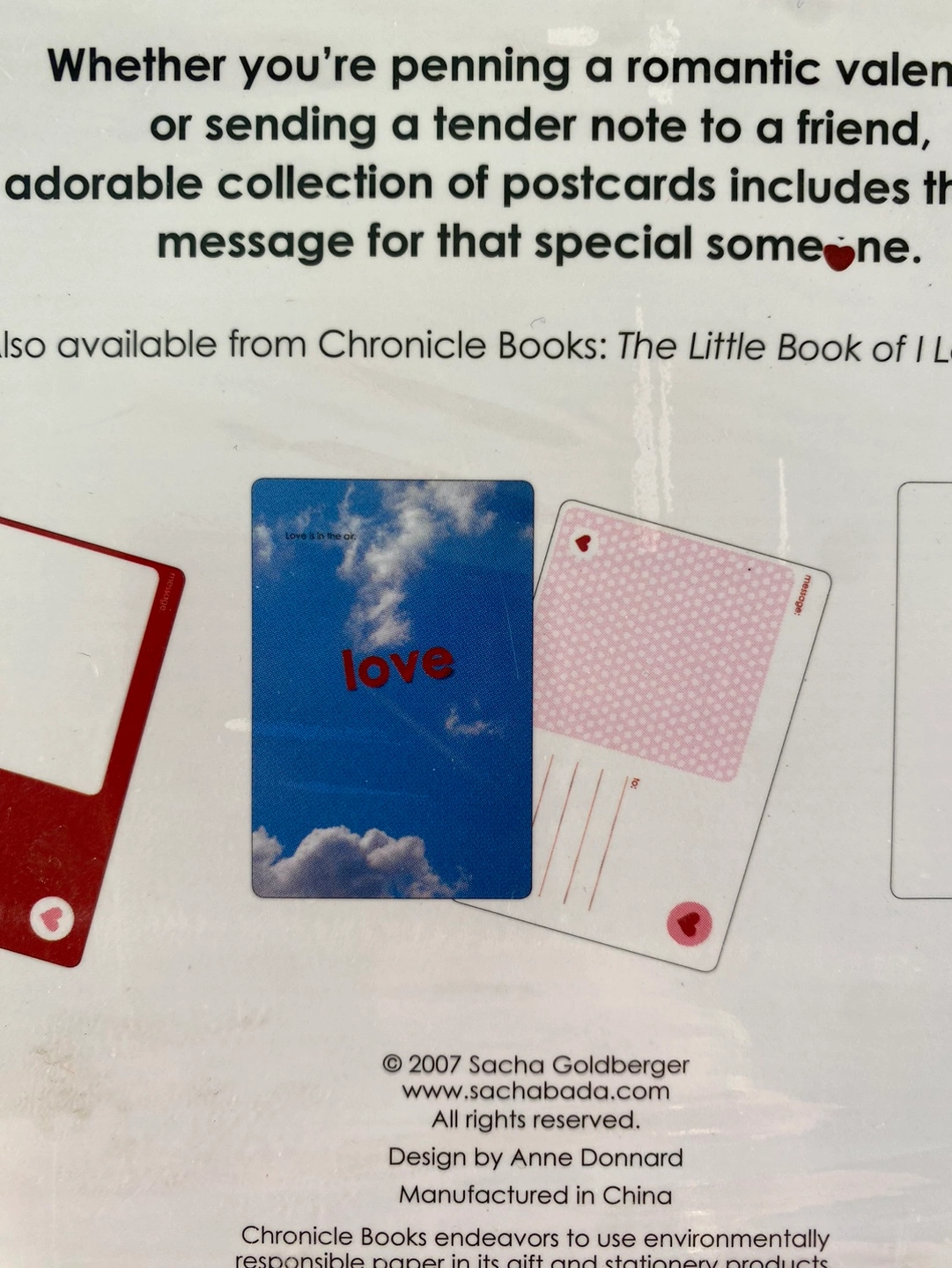 From the box: Whether you’re penning a romantic valentine or sending a tender note to a friend, this adorable collection of postcards includes the perfect message for that special someone. Sealed new in box, but the box is slightly damaged on the front.