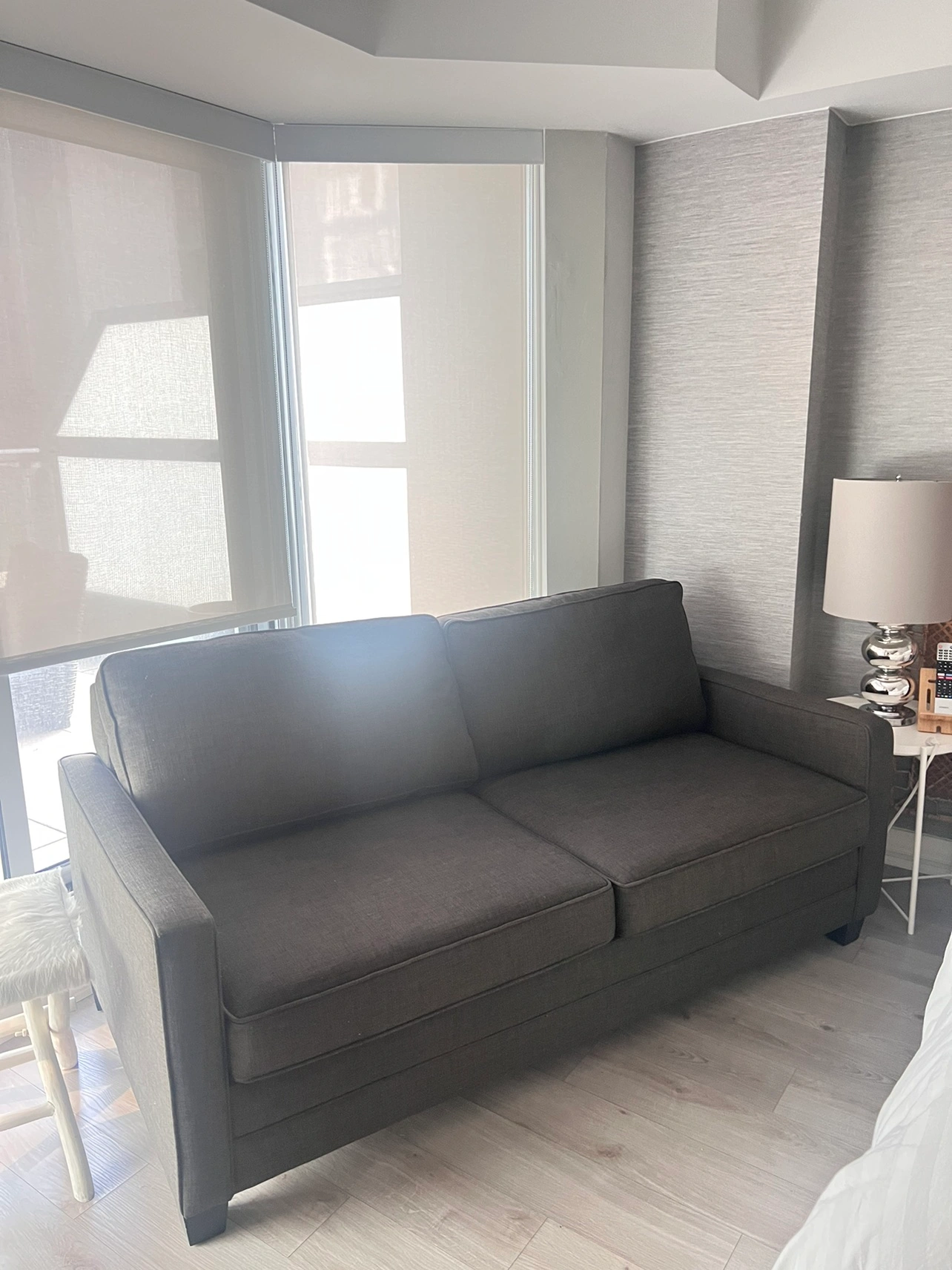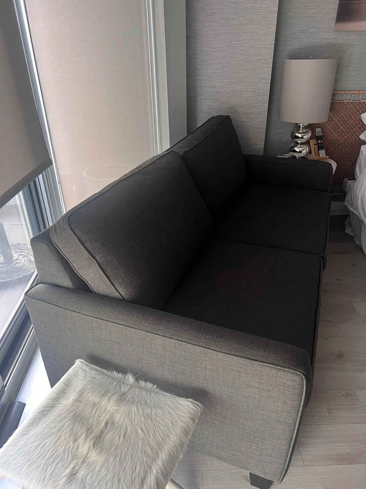 Brown pull out sofa bed for sale. From small space plus. No visible damage or marks. Selling because to big for it’s new home. Also paid for more comfortable pull out mattress when purchased for $2099.