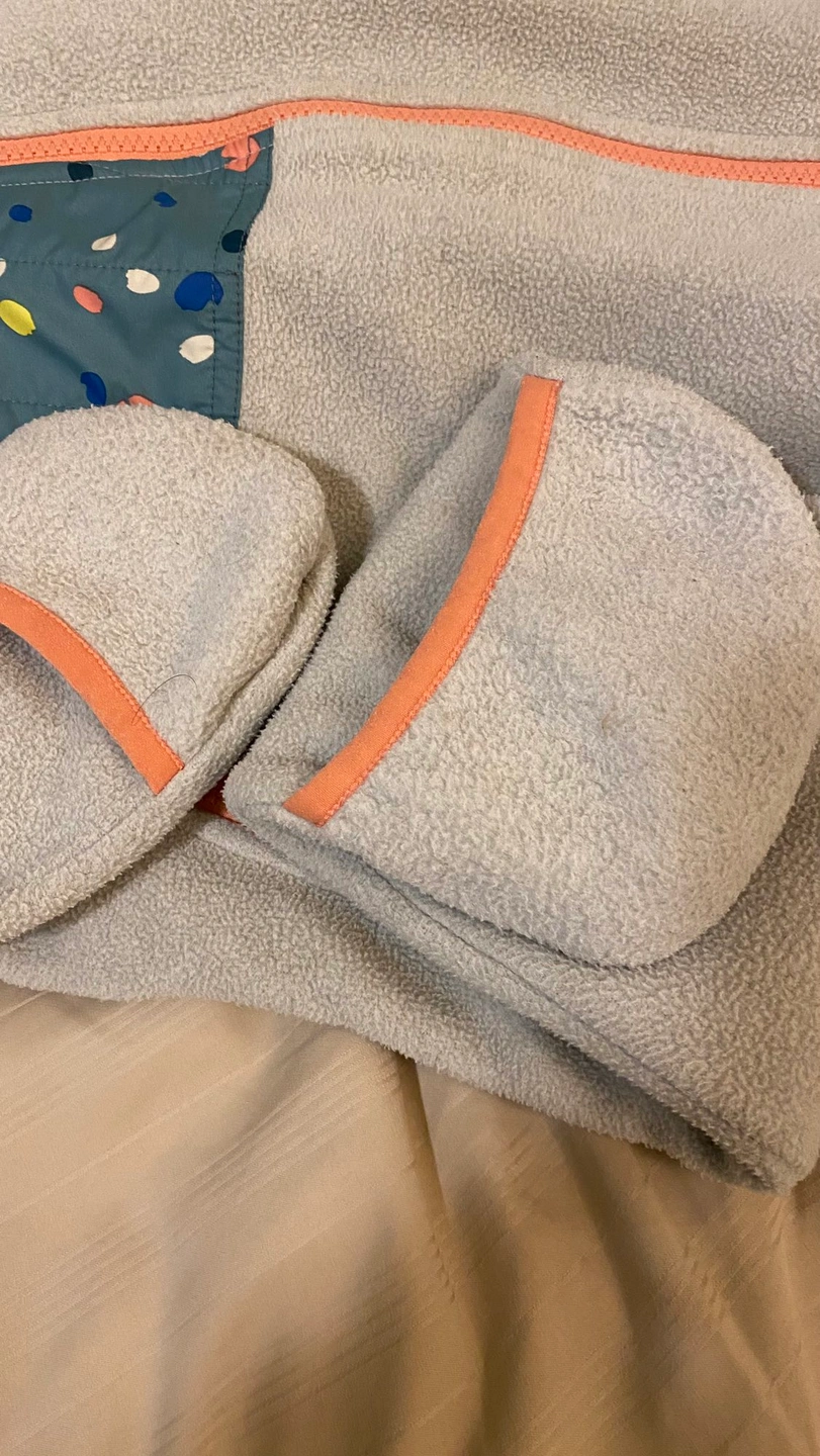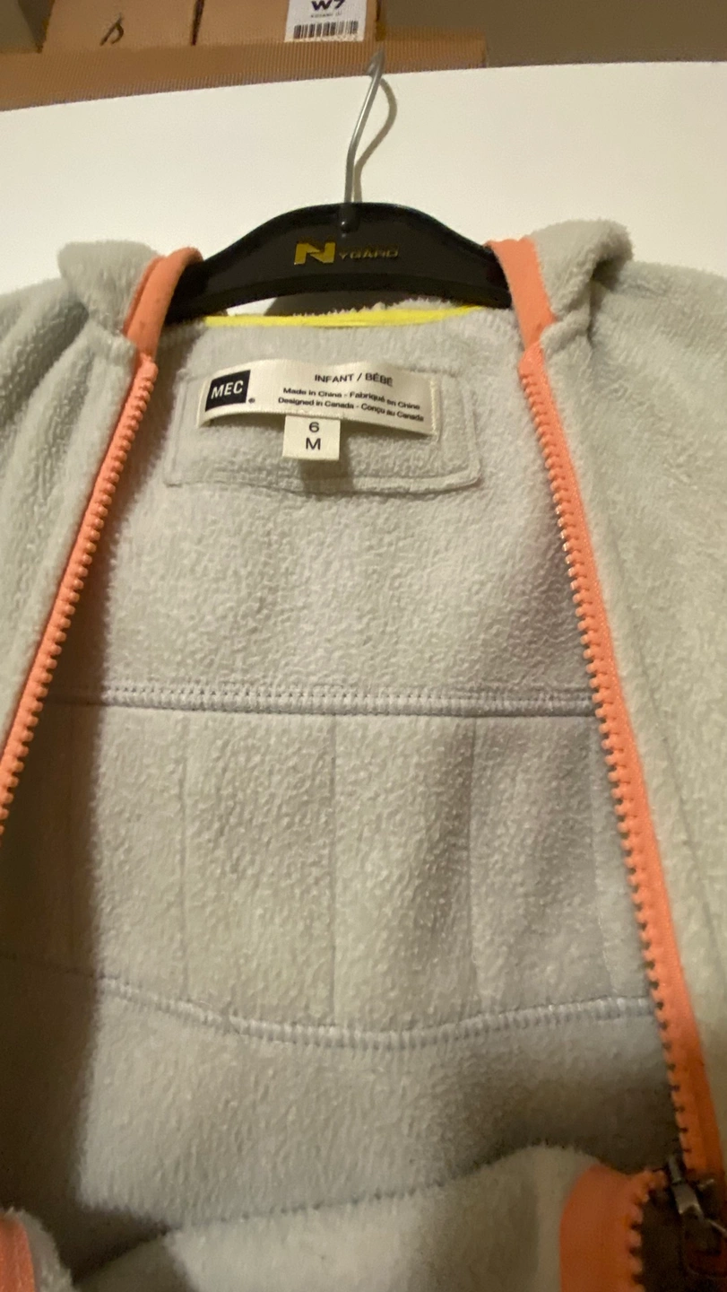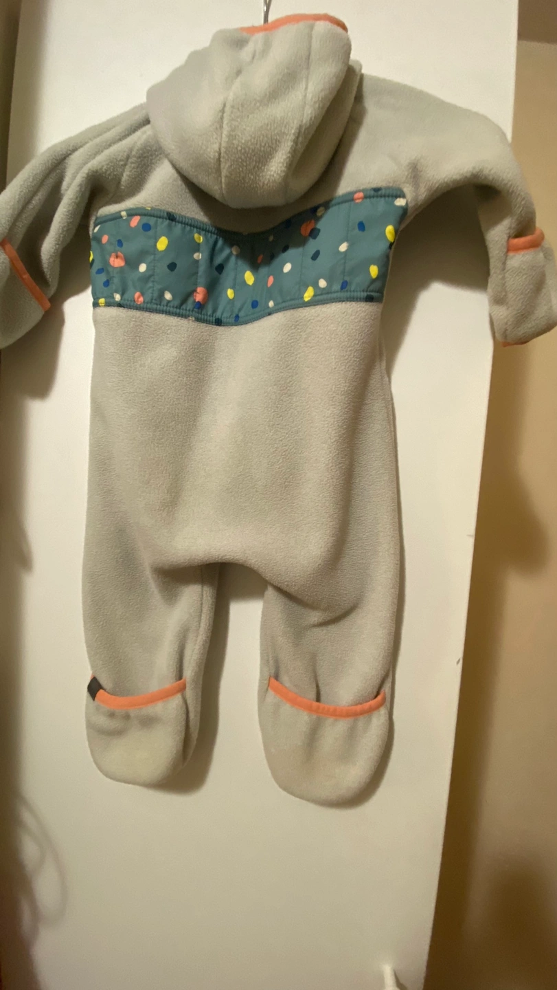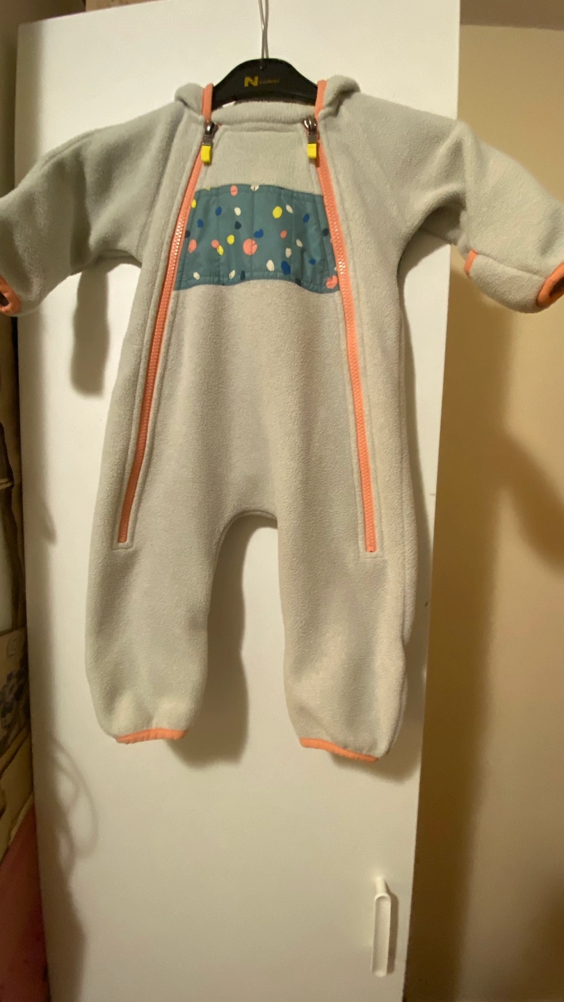 One piece Mec light grey thick fleece with fold over feet and hands, super warm , car seat safe , washed in unscented eco soap