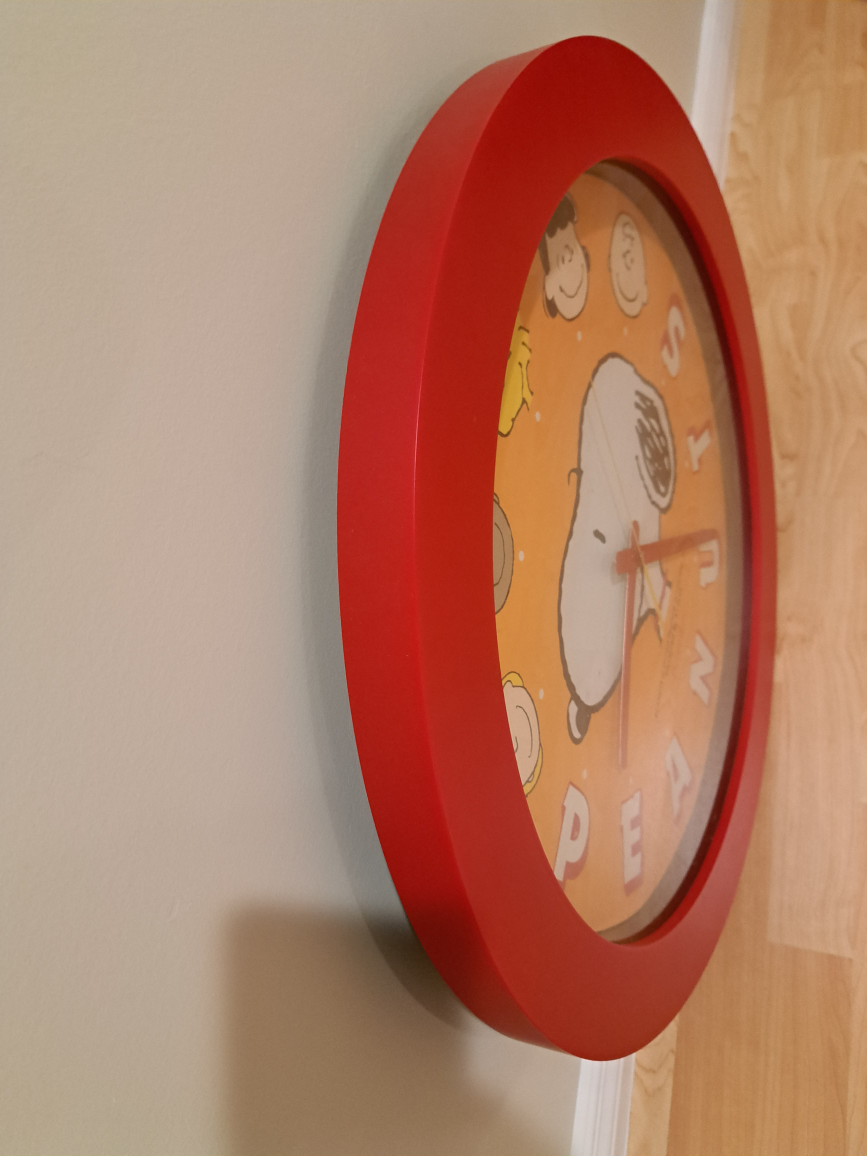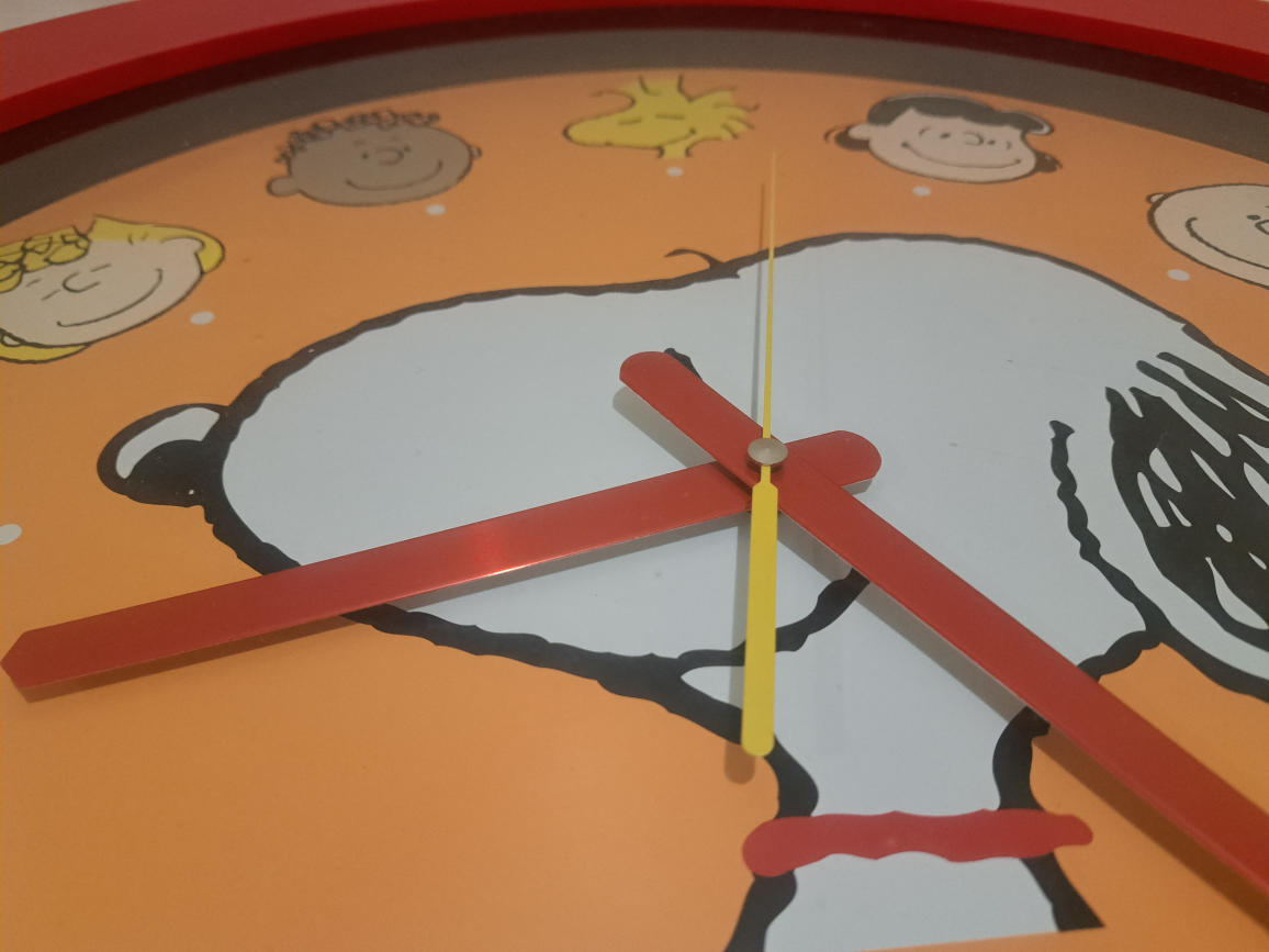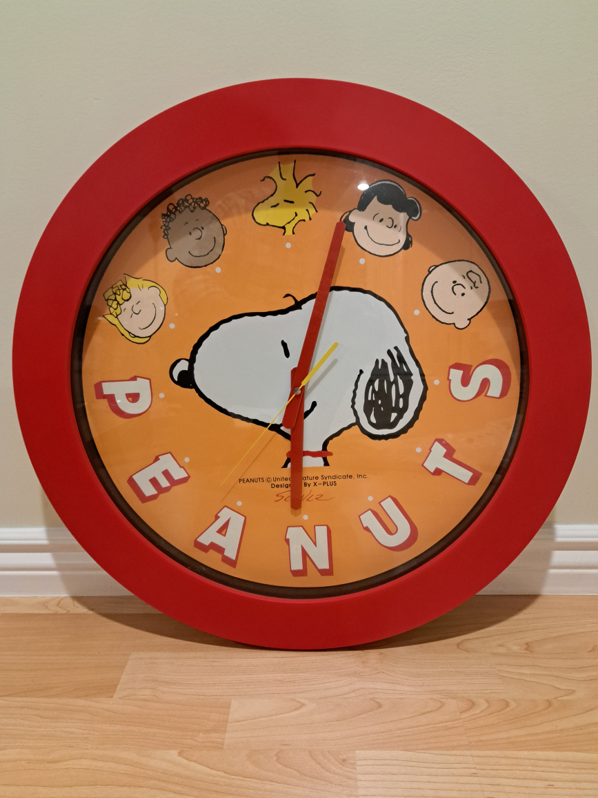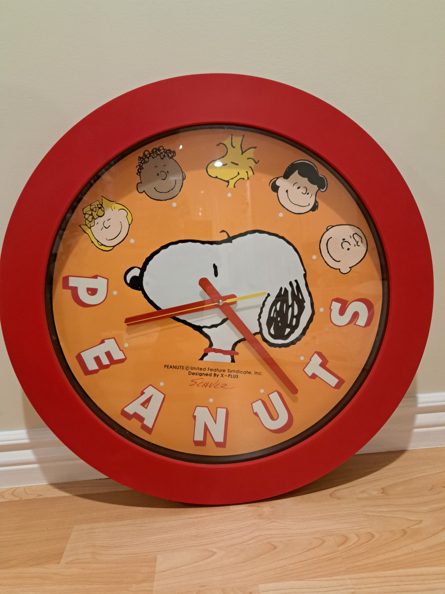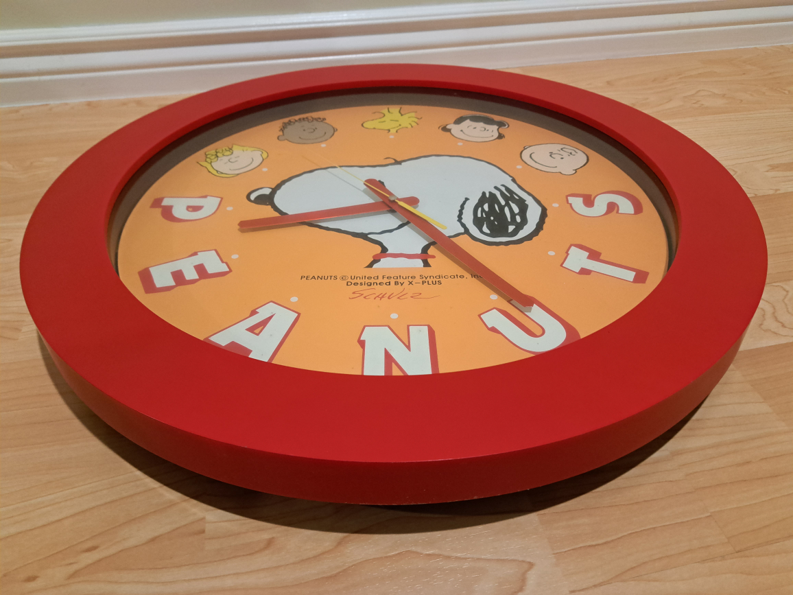 57024" Jumbo Peanuts Snoopy wall clock. Please don't expect this clock sharp as your phone time. +- 1 to 2 minutes per month.