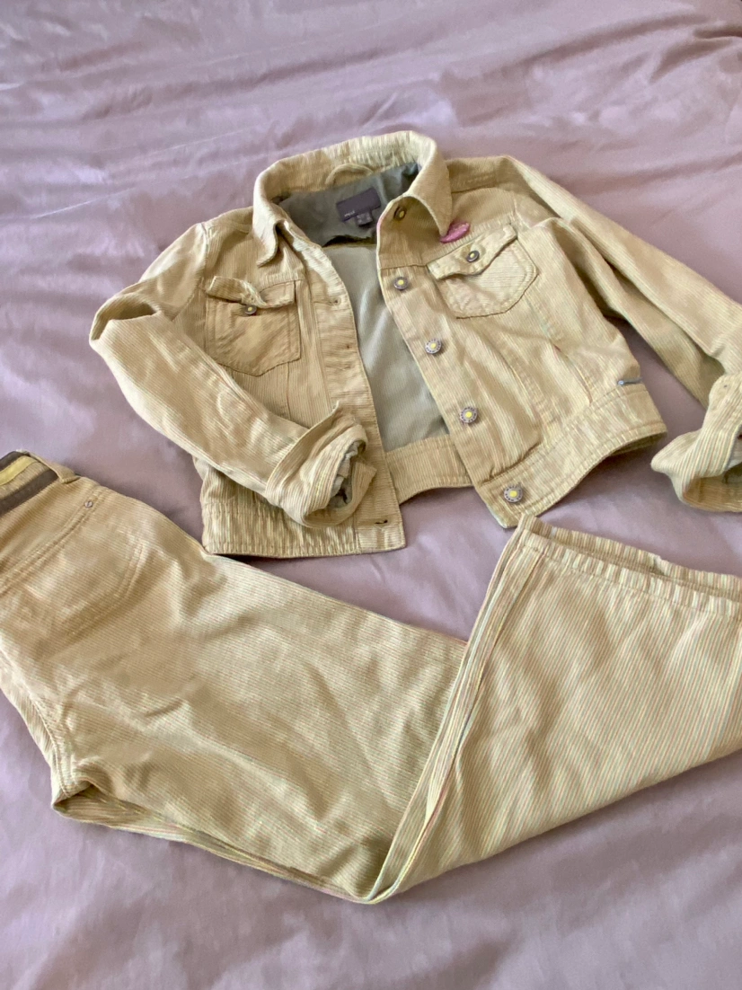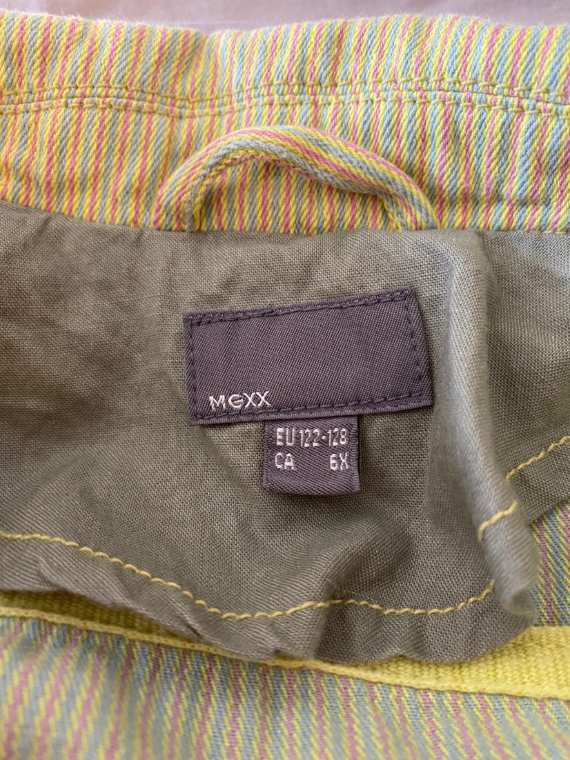 Mexx girls jean jacket and jean pants. Size 6X. Green pin striped colour. 100%cotton. Very cute and stylish. Worn maybe once. Excellent condition.