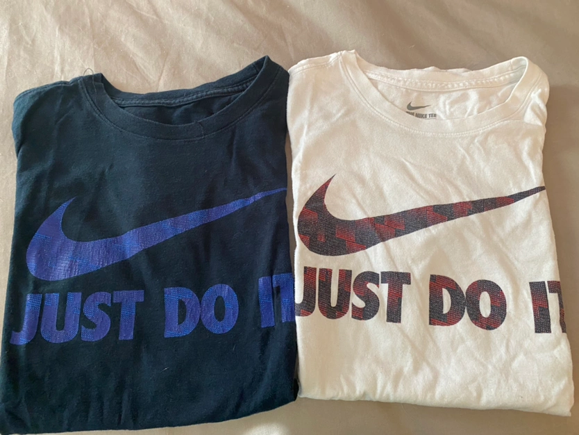 Boys Nike Tees , Just Do It logo. one white, one black . 2 for $10. Athletic fit. Size XL kids