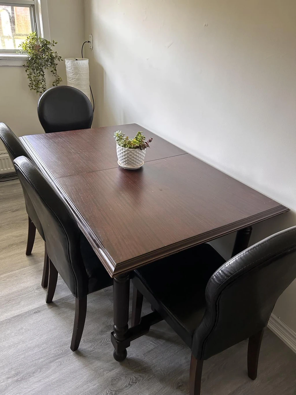 URGENT, Extendable wooden table + 4 faux leather chairs