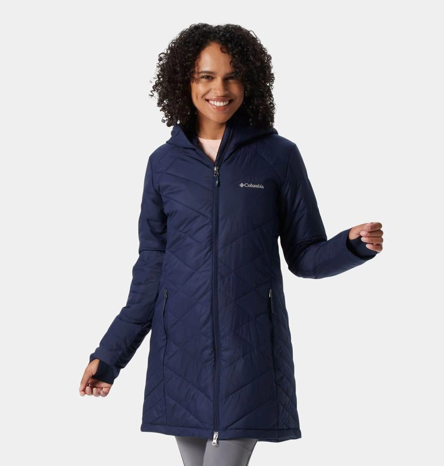 Heavenly warmth in a sleek, long, and lightweight jacket that'll keep you cozy on the move. The women's Heavenly Long Hooded Jacket combines a light yet toasty synthetic down insulation and a thermal-reflective lining for bonus warmth without the bulk. The shell fabric resists wet weather, while a flattering, longer cut and comfort cuffs with thumbholes provide crucial coverage from the chill.