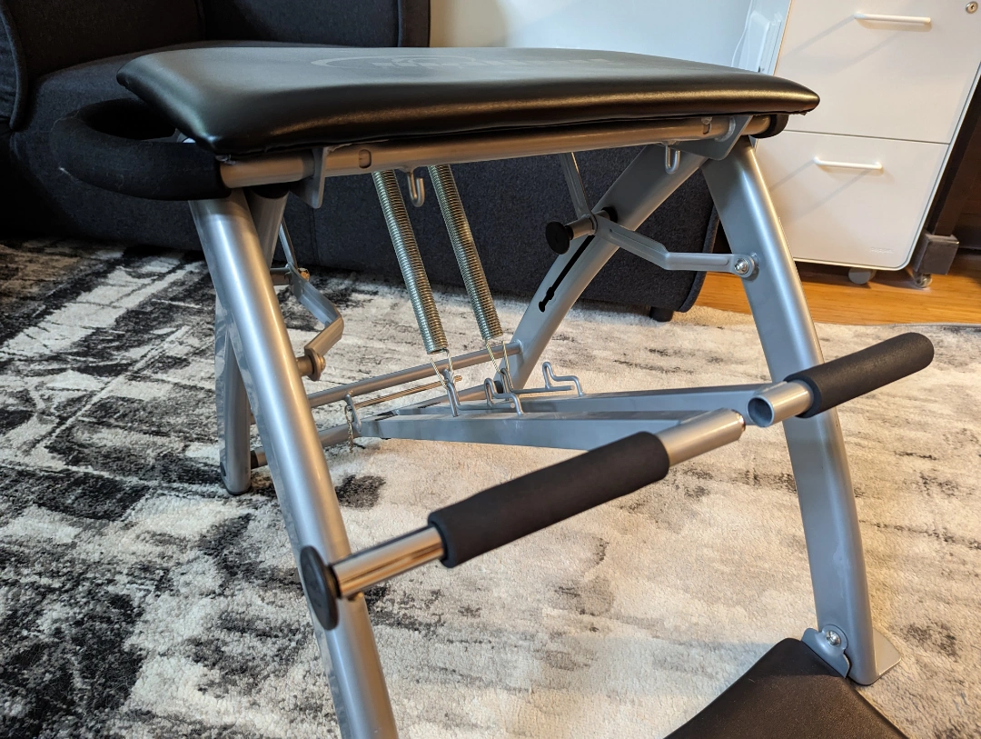 More detailed product description of similar item on Amazon: https://www.amazon.com/Malibu-Pilates-Pro-Chair-Accelerated/dp/B0021J8XAM