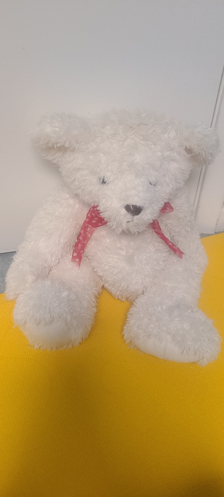 2 off-white Teddy bears kept in storage for awhile so needs a clean [tissue box for reference, pls take both]