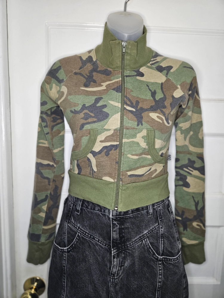 Outlaw Y2K Camo Cropped Zip Up Size Small