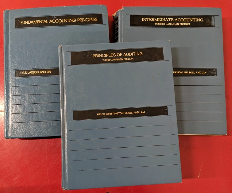 - FUNDAMENTAL ACCOUNTING PRINCIPLES / PYLE LARSON Y ZIN - INTERMEDIATE ACCOUNTING - FOURTH CANADIAN EDITION / RRISON, NELSON Y ZIN - PRINCIPLES OF AUDITING - THIRD CANADIAN EDITION / MEIGS, WHITTINGTON, MEIGS Y LAM 3 books for $15