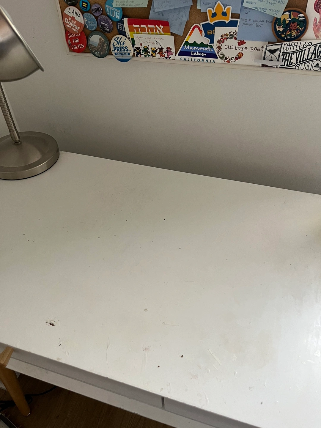 The desk surface shows some wear/damage, desk is otherwise totally fine