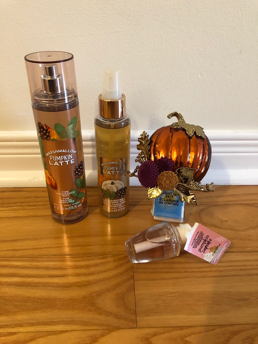 New items. Selling this as a set. Great gift for yourself or someone who loves the pumpkin scent! 1. Marshmallow Pumpkin Latte - Fine Fragrance Mist 2. Marshmallow Pumpkin Latte - Illuminating Fragrance Mist 3. Pumpkin Nightlight Wallflower Fragrance Plug 4. Pumpkin Cupcake Wallflower Fragrance Refill Pick up around McCowan and Alton Towers area. Cash only.