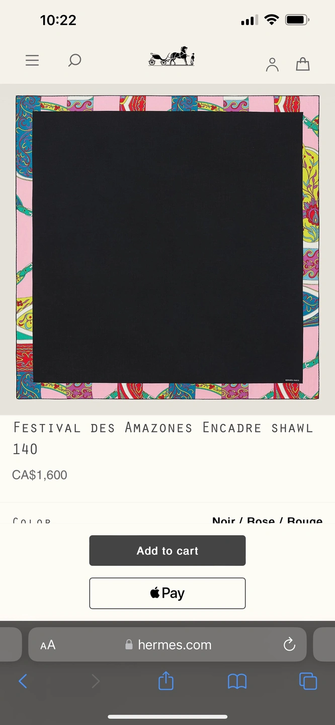 New with tags, the Hermes Festival des Amazones Encadre Shawl 140. Includes the box and ribbon. 70% cashmere, 30% silk. Authentic. Retails for $1600 plus tax and is currently on the Hermes site for purchase. It is black with the colourful border. Open to reasonable offers