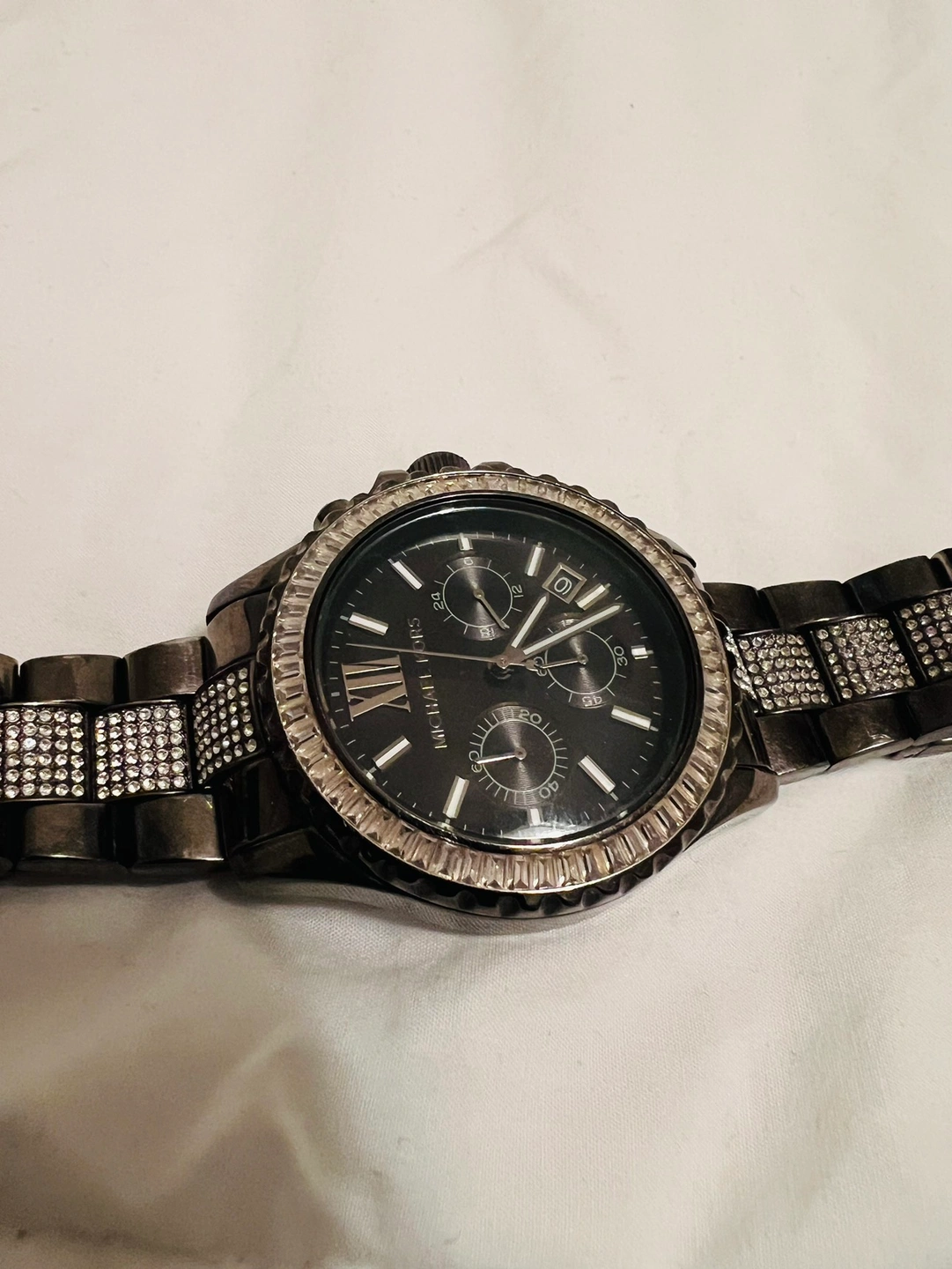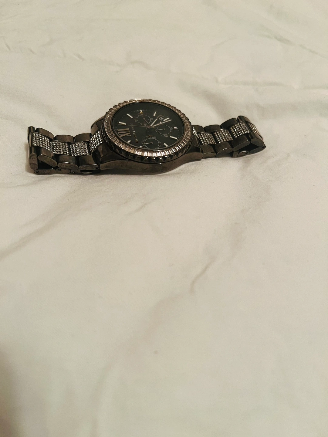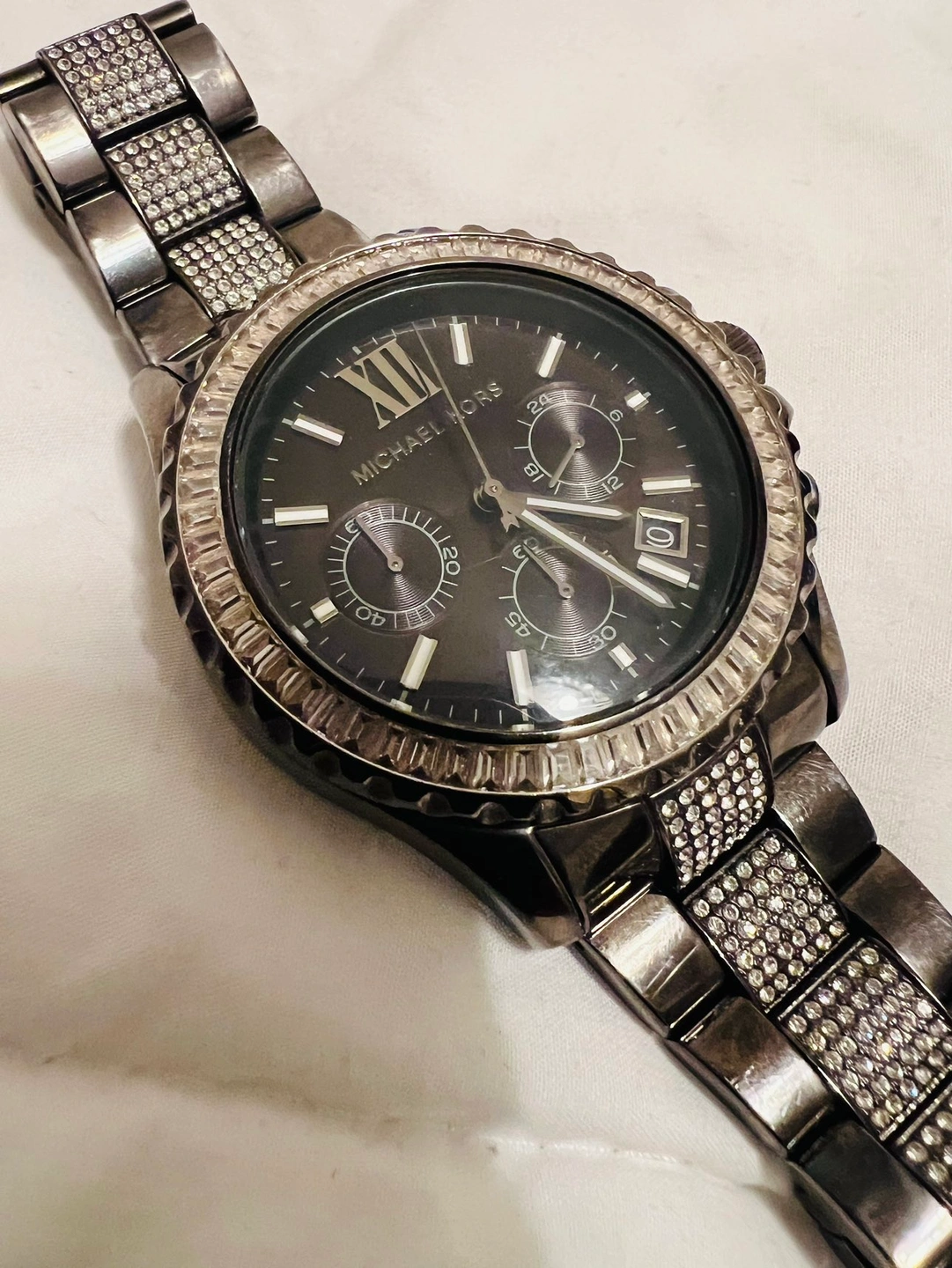 Woman’s Micheal Kors lexington Lux chronograph stainless steel watch. In silver retails for $300.00 cash pick up only. From a smoke/ pet free home.