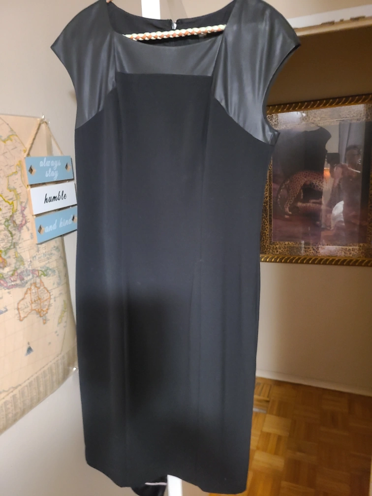 TRENDY BLACK DRESS LOOKS NICE WITH KNEE HIGH BOOTS OR BOOTIES.. Slight Stretch control top fitting
