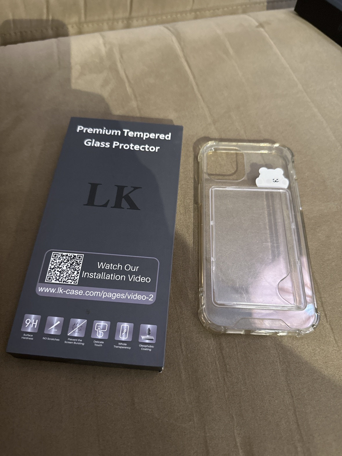 Comes with box and cable, clear card case and two screen protectors