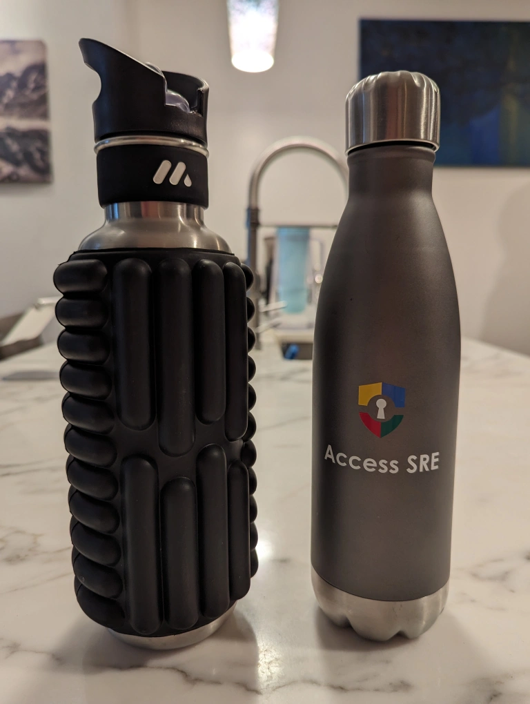 Lightly used Mobot water bottle, pictured on the left. Sells for $49.99 new (https://mobot.com/products/grace)