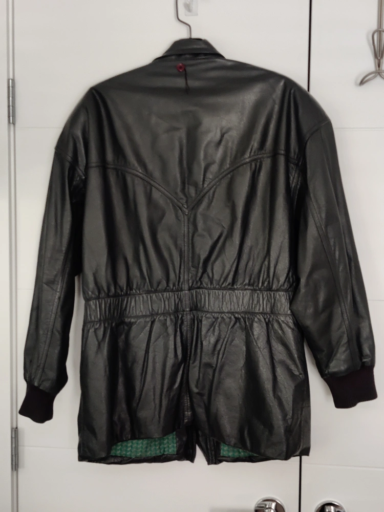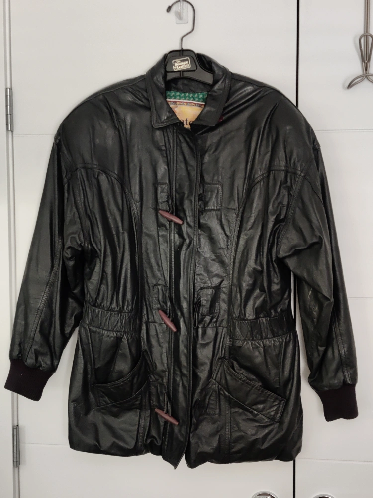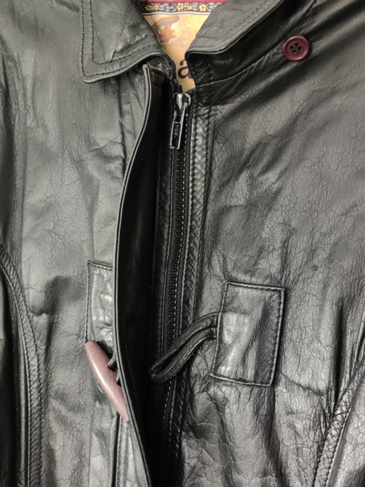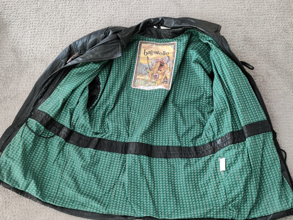 I am selling a Bagatelle Black Leather Women Ladies Zipper and Button Winter Jacket Coat - Size 12 in used, good condition. No rips or tears and some minor signs of wear. Integrated shoulder pads on the shoulders.
