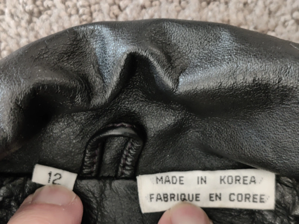 Black Leather Women Zipper Winter Jacket Coat - Size 12