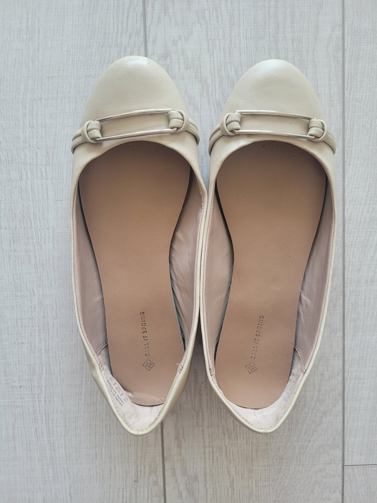 Neutral beige flats. Great for any business casual outfit!