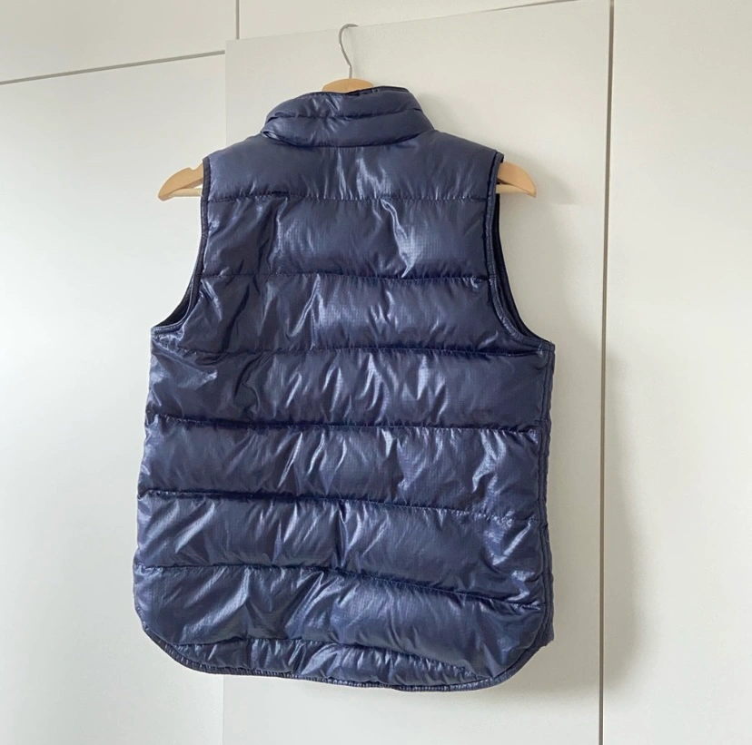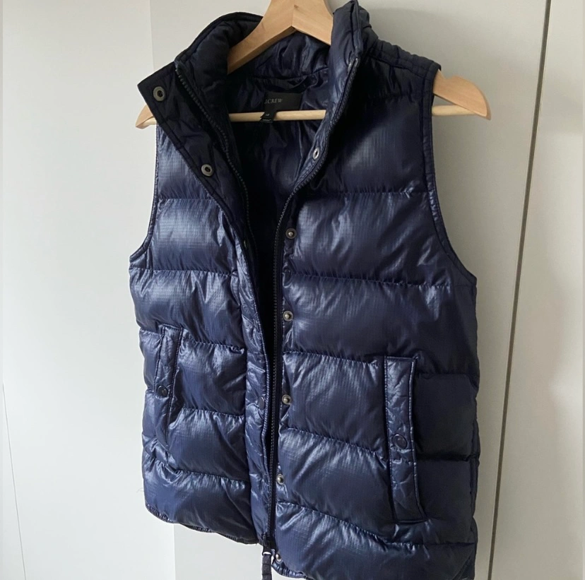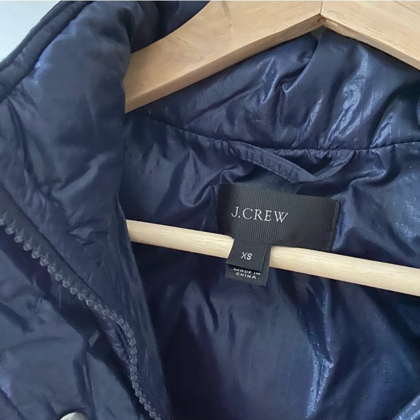 Super warm J Crew puffy vest in navy blue. Only worn once, like new, size XS.