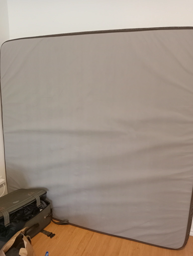 it's a spacious king size mattress which has room for 3 people to lay down at the same time .Free from bed bugs and other infestations , bought it for a friend ,used for a while, now we are moving out .