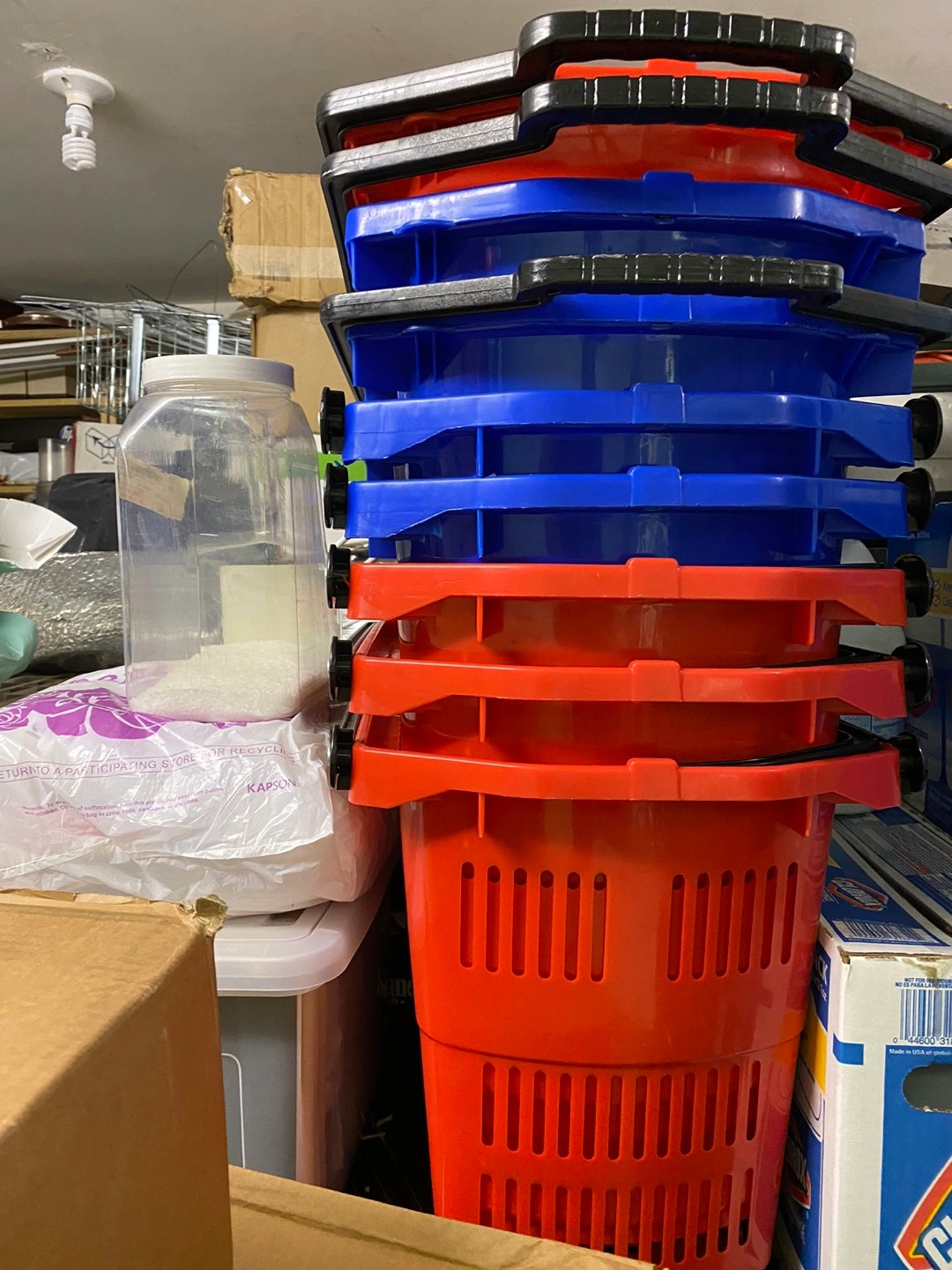 Shopping baskets with wheels and handles