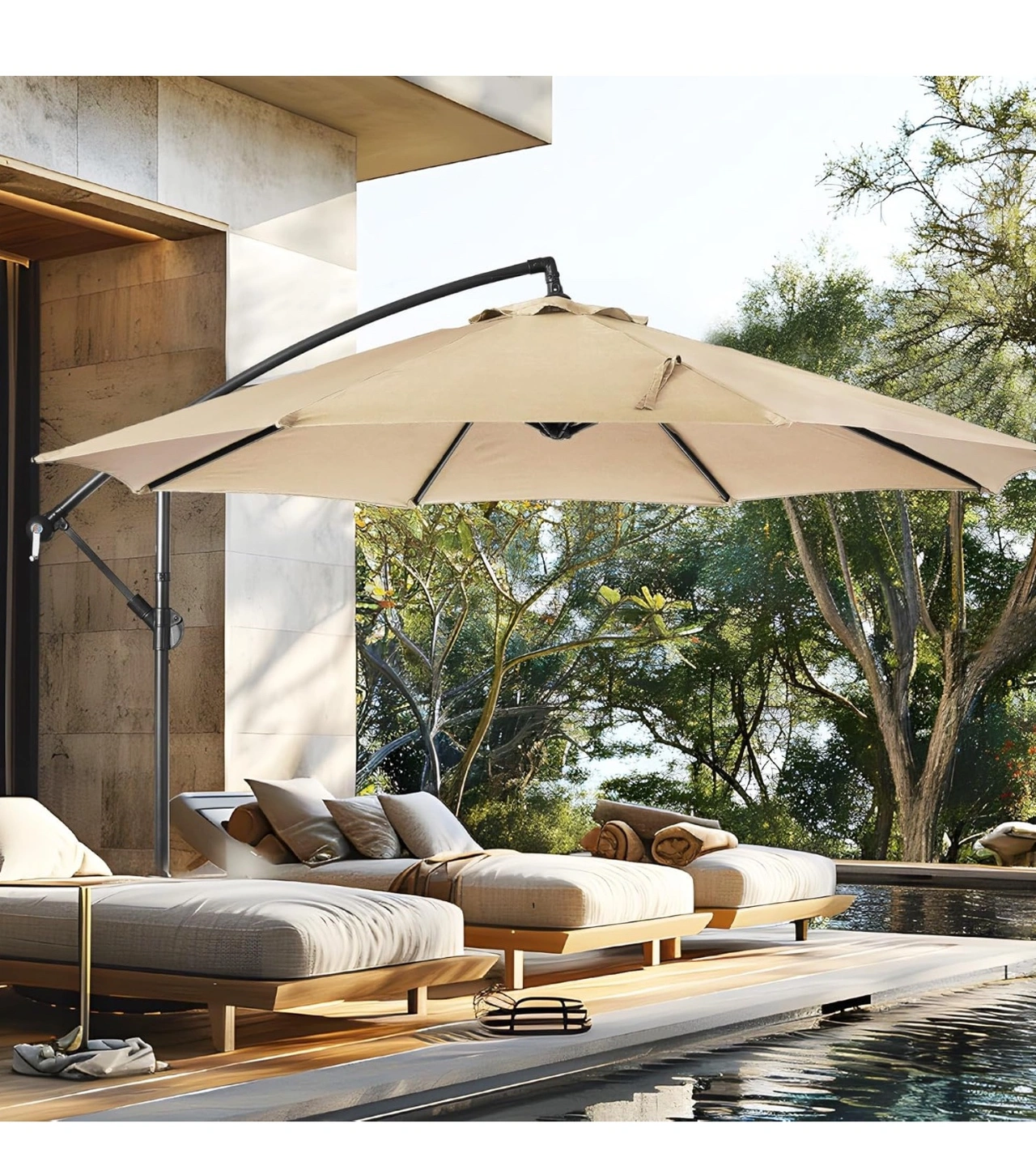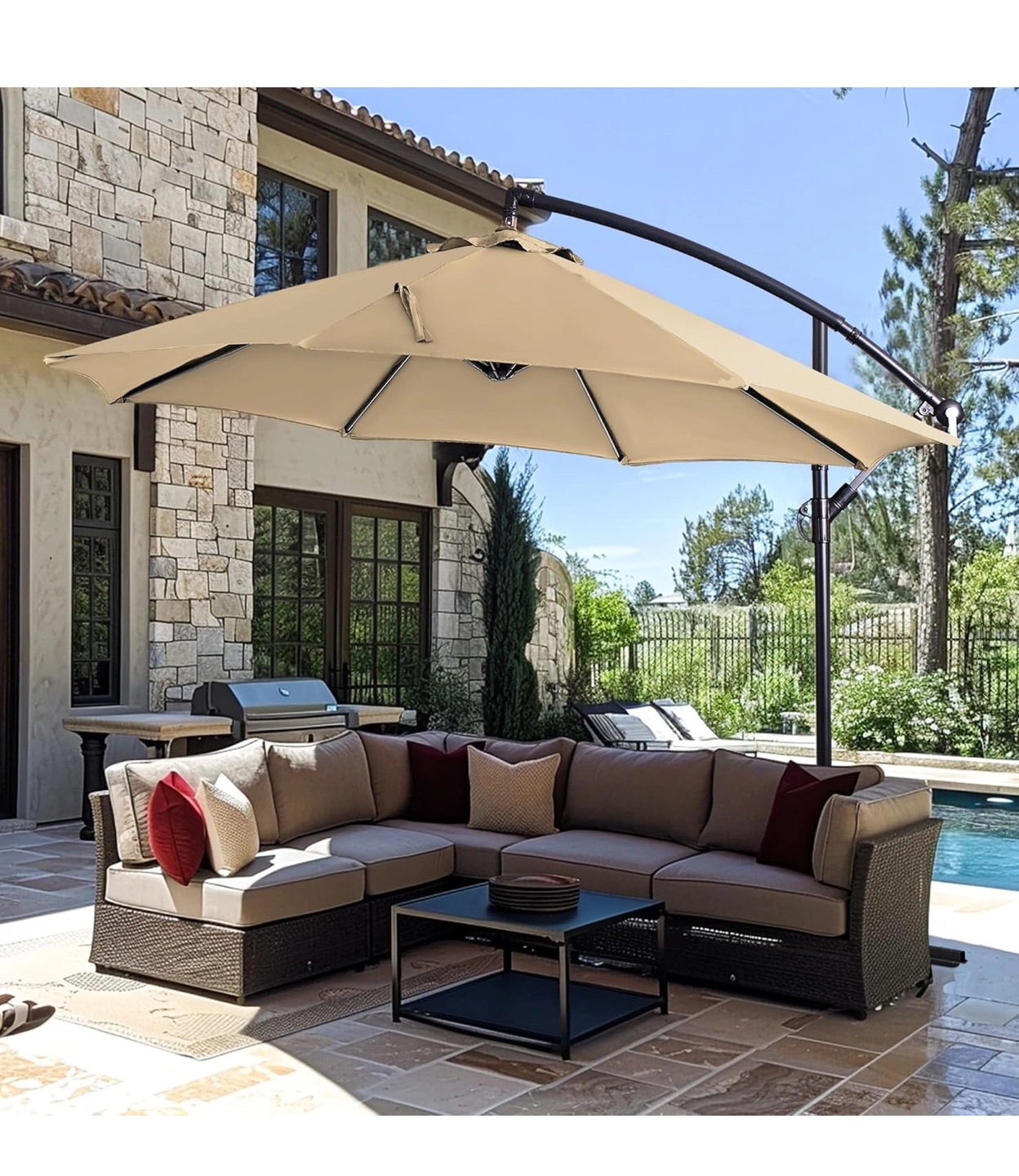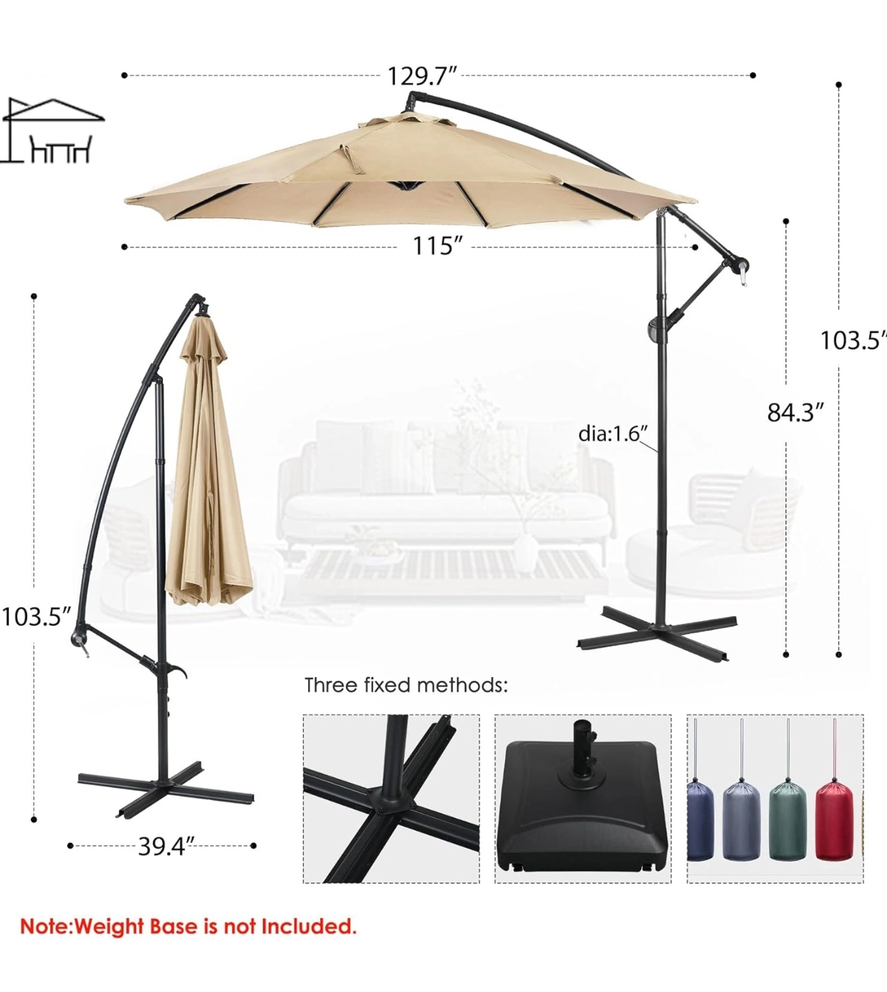 10210FT PATIO OFFSET UMBRELLA BRAND NEW $110 Extra Weighted Base is Needed It's a great choice for your garden, yard, pool, deck, background beach, balcony. Only the bottom half of the umbrella needs to be installed. Pickup bovaird and Great Lakes Brampton