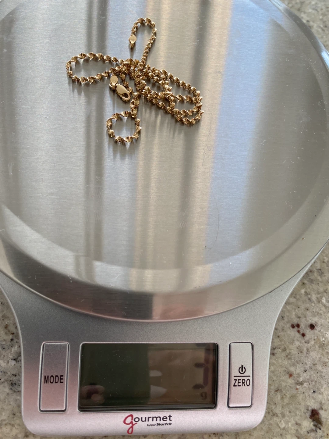 Selling a 10k gold necklace that's about 16 inches long and 2 mm wide. 3 grams. It's in great condition-check the pictures pls. Pick up at Yonge and Bloor