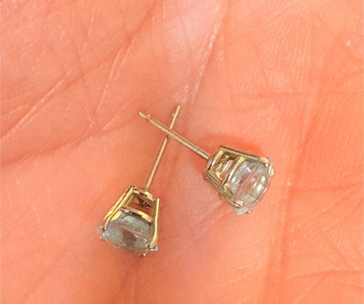 84These are a pair of lovely 10KT gold stud earrings. They come in a box, perfect for gifting or keeping them safe. The tag shows that they were originally priced at $450 Genuine blue topaz stone Feel free to also check my other listings make a bundle with discount.
