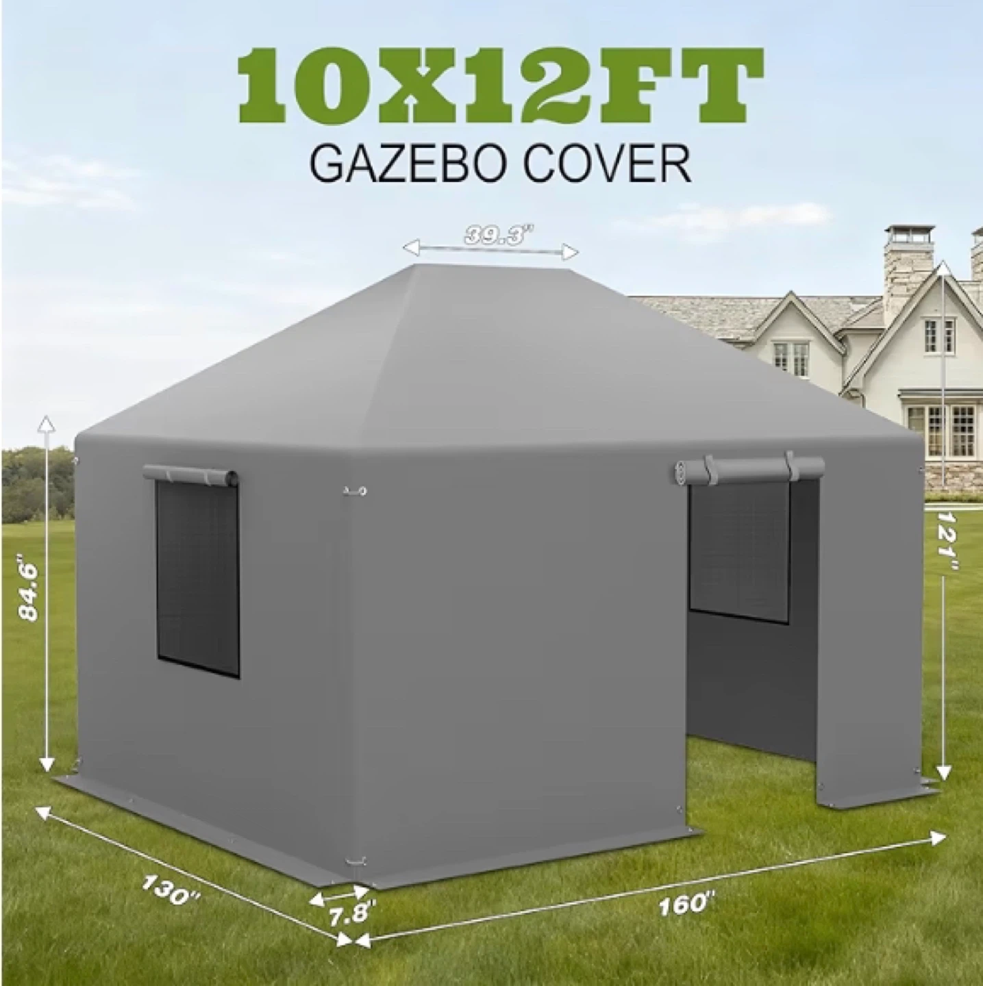 40Selling a 10x12 ft gazebo cover! It features adjustable windows with Velcro, a door with a rolling shutter, and a double zipper door. Perfect for creating a cozy outdoor space in your backyard