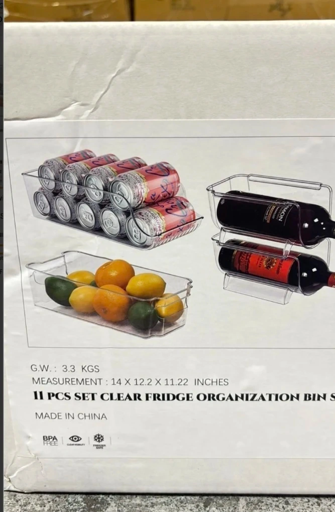 10Keep your fridge tidy with this 11-piece clear organization bin set! The attractive clear plastic design makes it easy to see what is stored and find your items quickly. These non-slippery freezer organizer bins have practical, integrated handles to facilitate the removal and flexible movement of the kitchen storage units and clear fridge organizers and storage bins. They are made of durable Chlorine-free shatter-resistant plastic