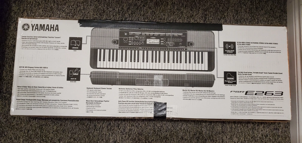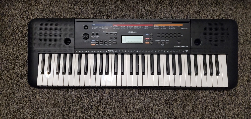 Yamaha's PSR-E263 is a 61-key, entry-level Portable Keyboard featuring a wide variety of sounds and functions. The PSR-E263 is an ideal first keyboard for aspiring musicians who are just starting out.
