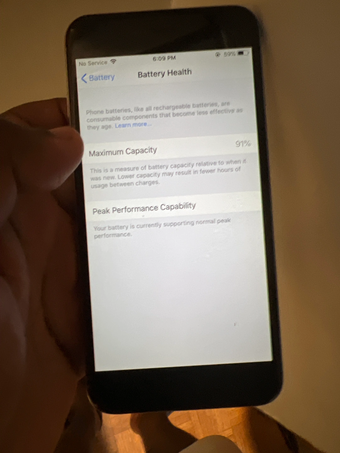 The phone has slight scratches but works perfectly fine and has 91% battery health. So it’s available for use instantly. The phone has a finger scanner for security.