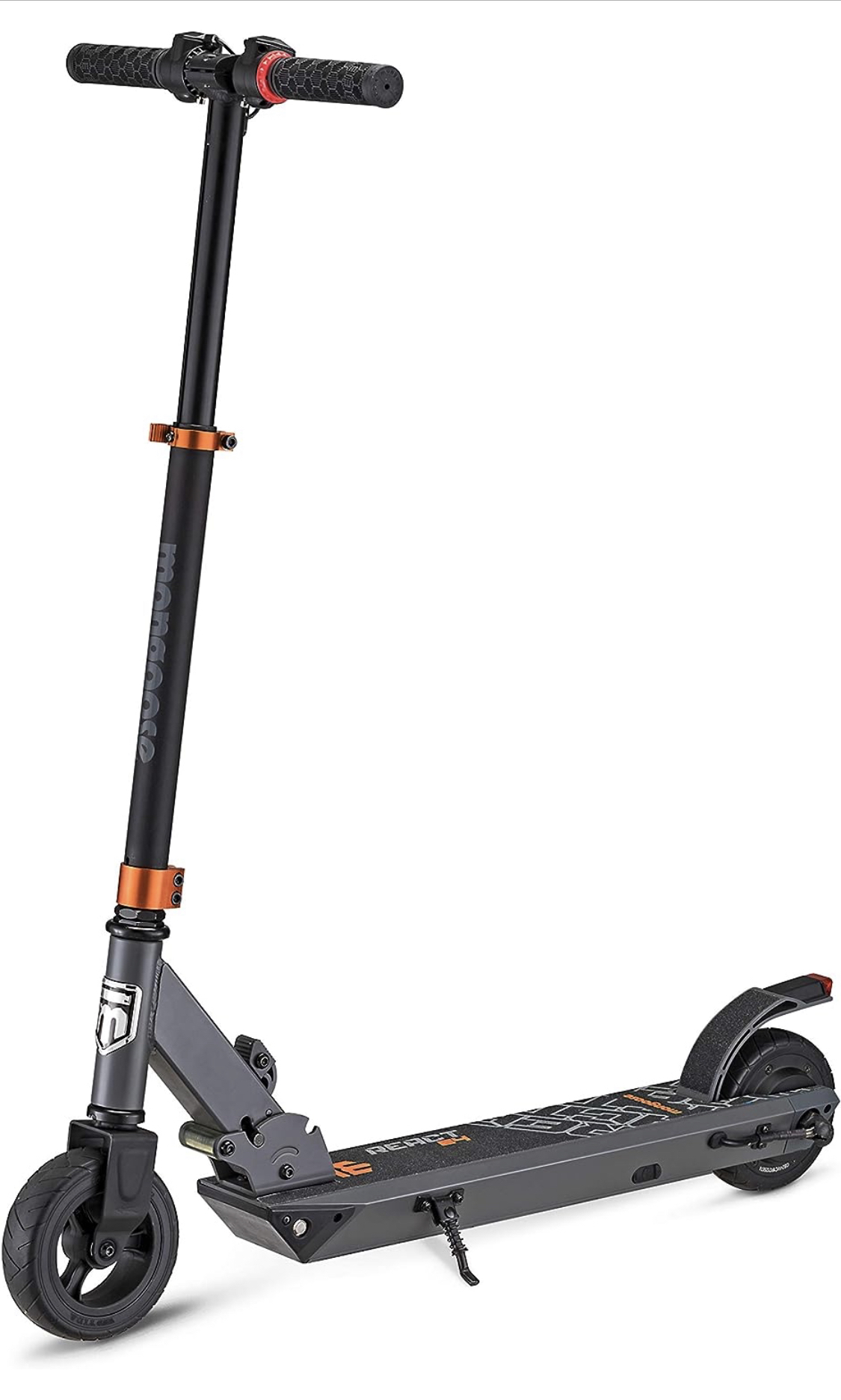 Motor and Throttle: To start motor, Kick Start the scooter and use the hand lever throttle to accelerate, a high-power hub drive motor tops out at 15.5 MPH Rider Profile: Fun ride, torque-heavy scooter is perfect for older kids/adults to ride around town, designed for ages 13 and up, maximum weight limit of 176 pounds Battery and Charging: Powered by a long-lasting lithium battery, can travel up to 6 miles on a single charge, battery charge time of 3 hours, Charger included Wheels and Brakes: Durable 152 mm rubber wheels offer a smooth and stable ride, rear foot brake or hand e-brake disengage the motor to make stopping safe and simple Frame and Coasting: Lightweight aluminum frame and kick stand makes it easy to transport and store, can be used as kick scooter for resistance-free riding if the battery runs outShow less