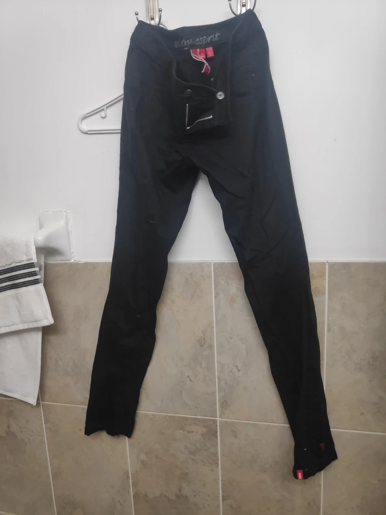 Doesn't fit me anymore. I don't think I wore these pants even once. From back in my high school days. Excuse the wrinkles.