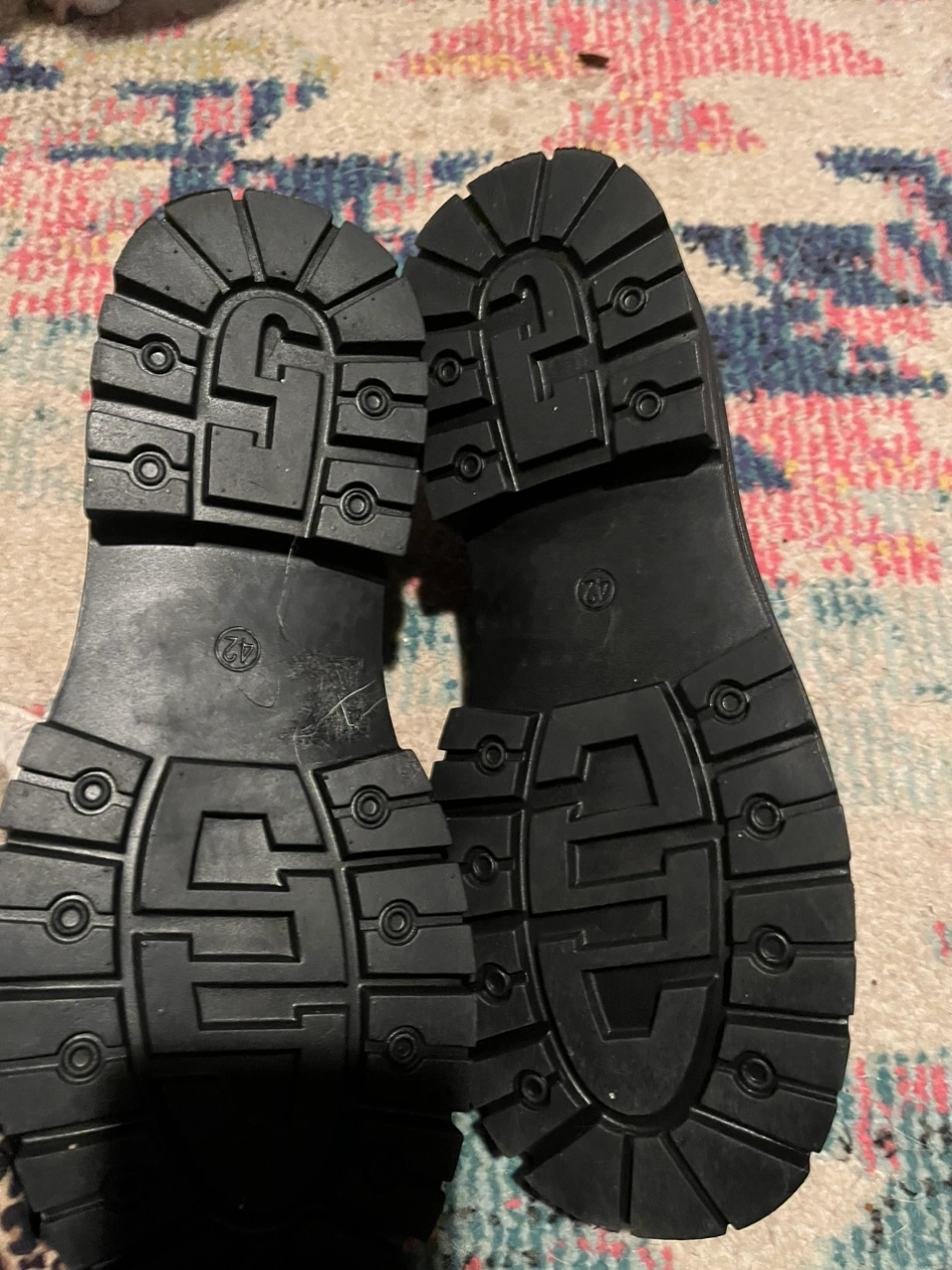 I just got these off Amazon. They are a man made material. They said size 42 which I thought was a size 9 but they are too big for me and slip right off when I try to walk. Worn once for about 10 minutes h til I had to go back home and change because I was a danger to myself! These would be good for someone with a wide foot. Pick up near coxwell and greenwood or I can meet in the distillery district.