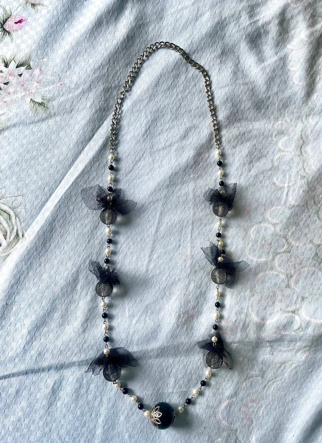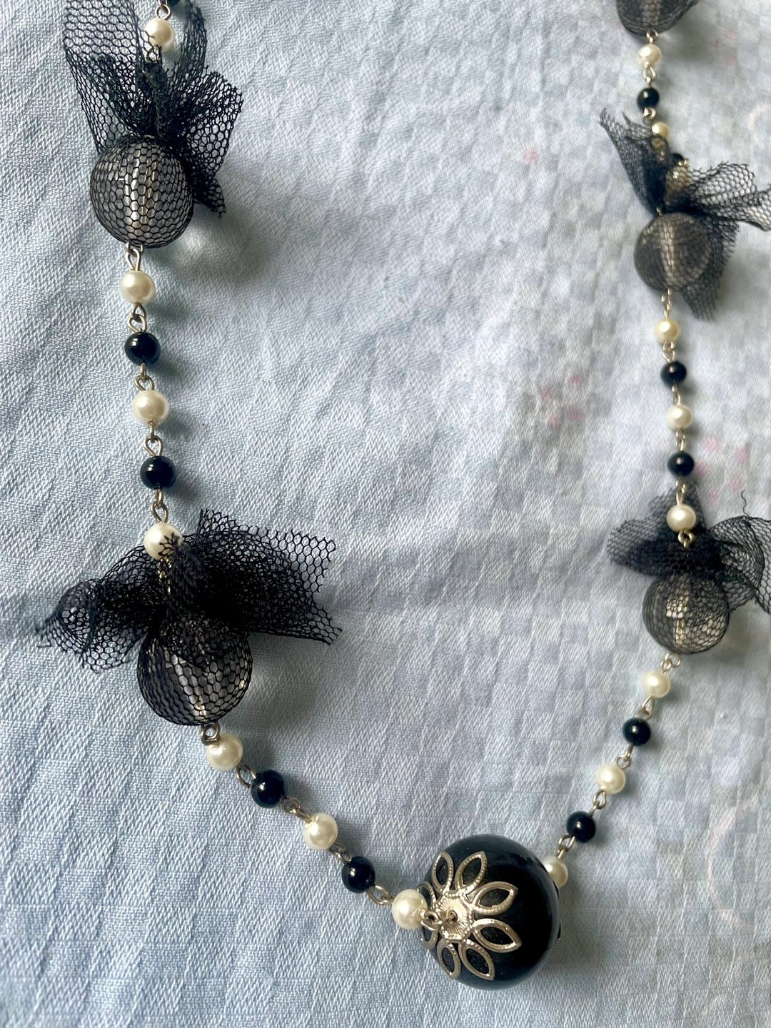 Beautiful Japanese pearl black mesh beads long necklace 🦃