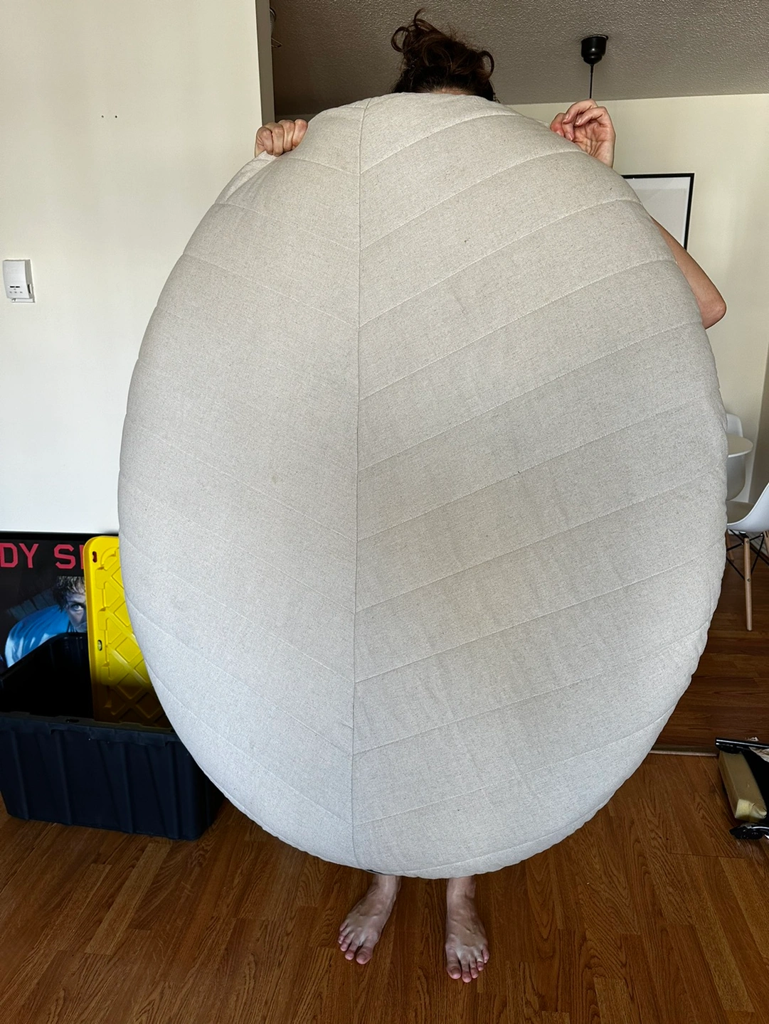 With this puff at home, there’s always an extra place for you and your friends. Have it on the floor or lean it against a wall as a comfortable backrest. See less