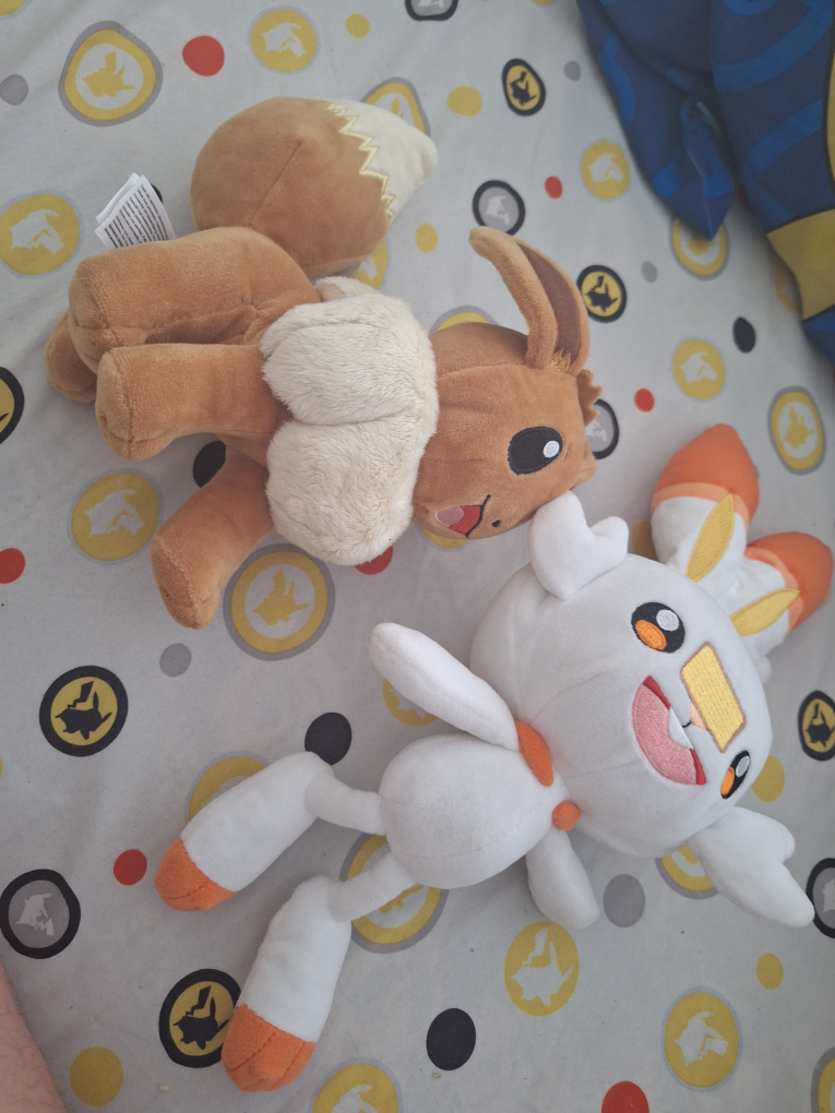 889Scorbunny and Eevee plushes for sale! Scorbunny is in great condition just has a small brown stain on left hand as shown. Eevee is also in great shape but has green stains on tail as shown. Looking to sell as I am decluttering my collection. Selling them $4 each or $8 for both. Price is firm. Recently came back from long break from this app. Please check my listings or give me a follow for any new updated items. Pickup in Kennedy Commons Scarborough.