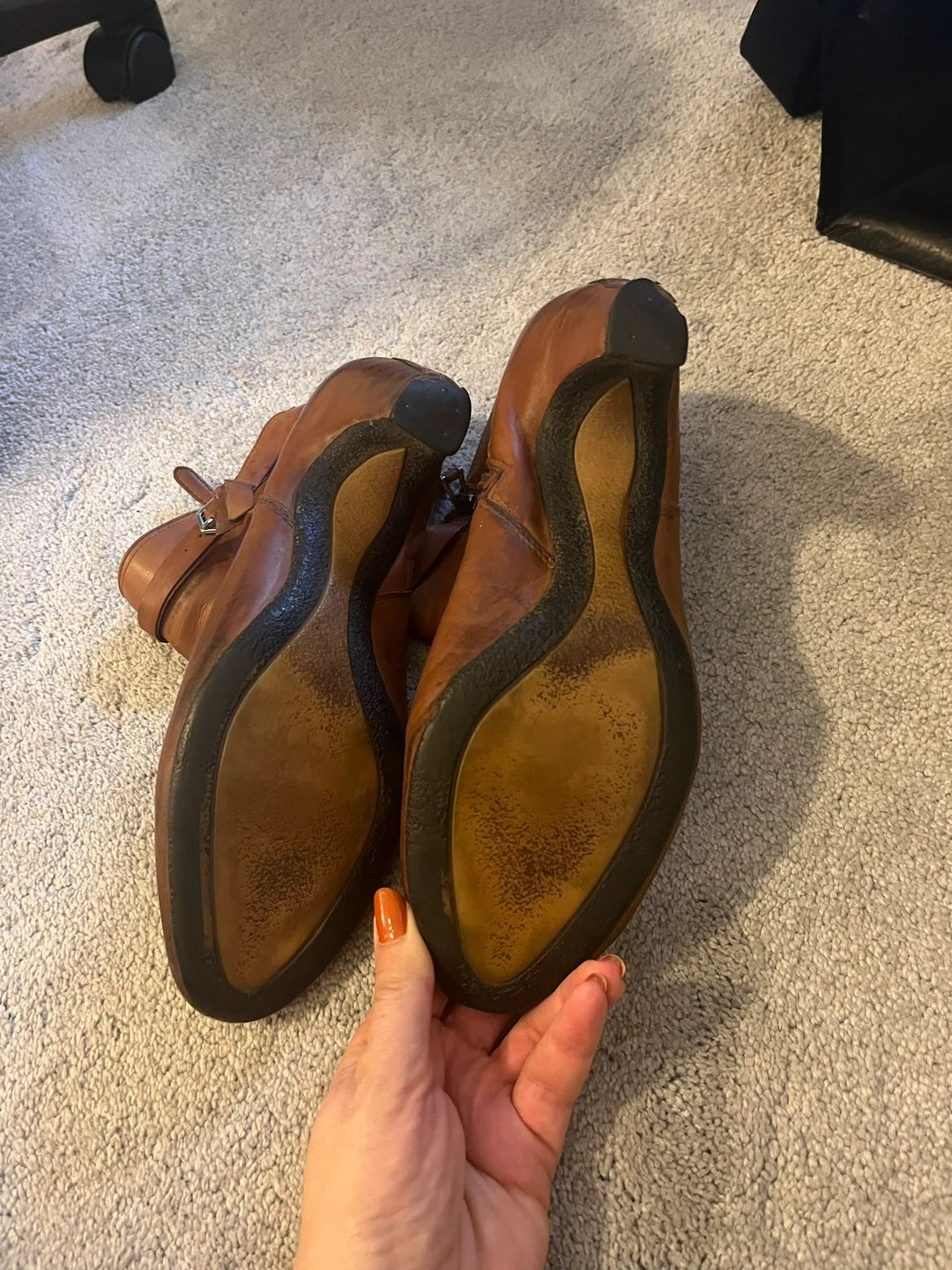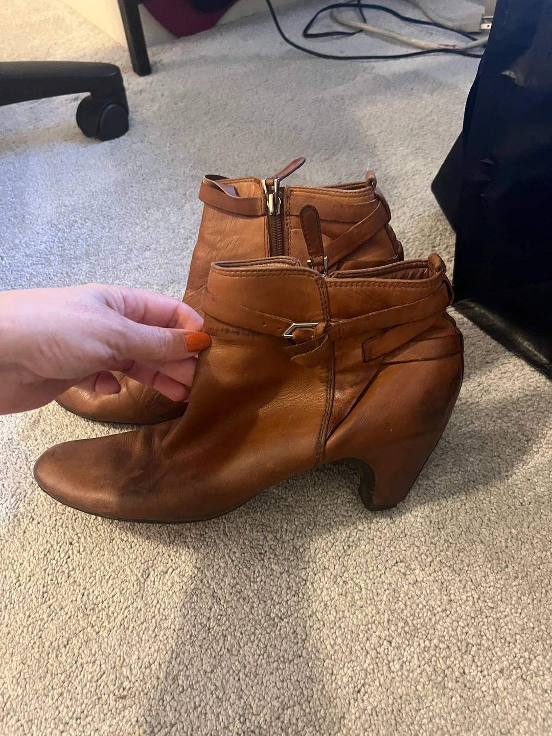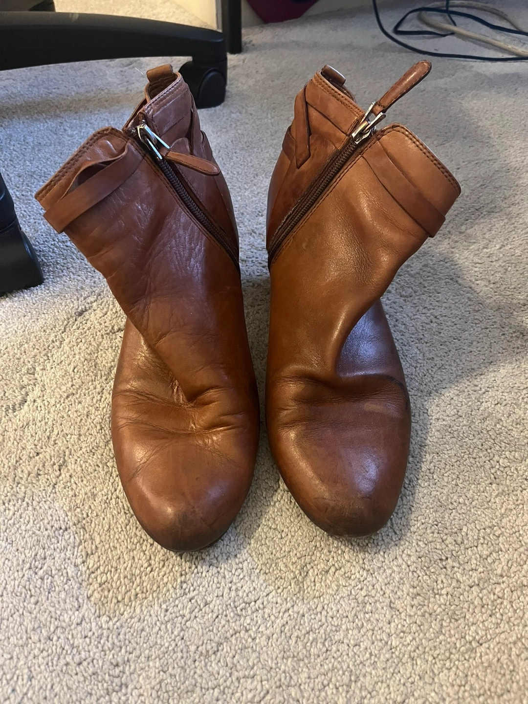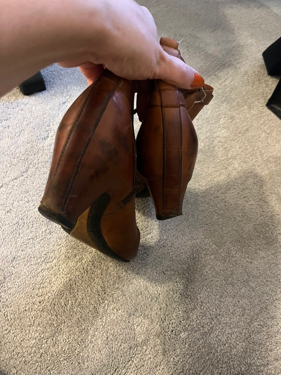 For the most part, they are in very good condition, but just need some shoe polish, and for the heals to be repaired.