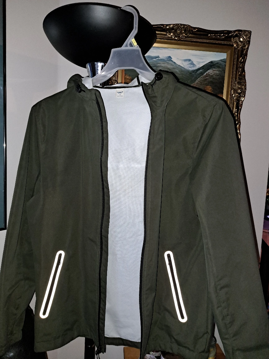women's olive green size medium wind breaker. water resistant (not water proof).