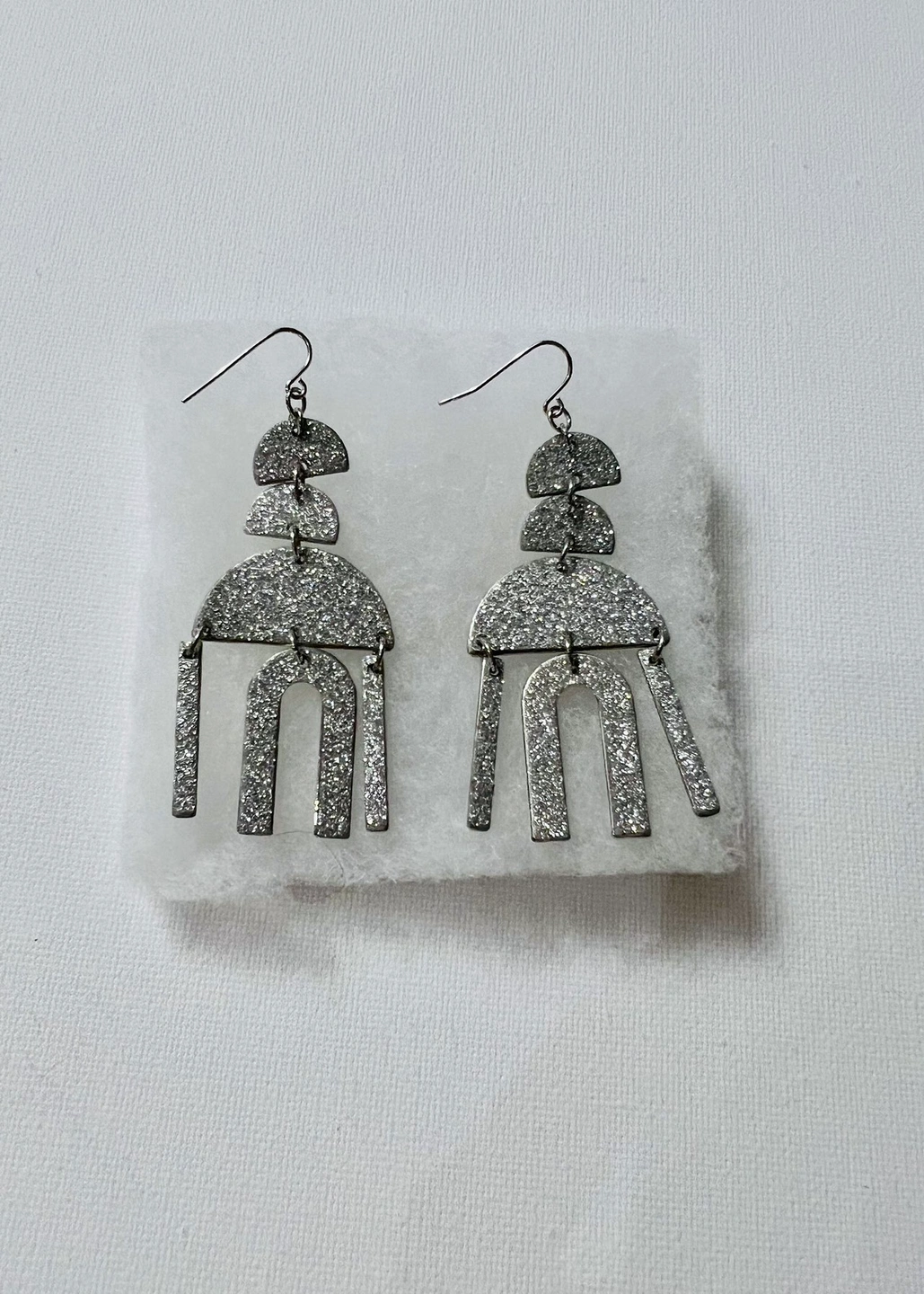Sparkly Silver Abstract Design Dangle Earrings