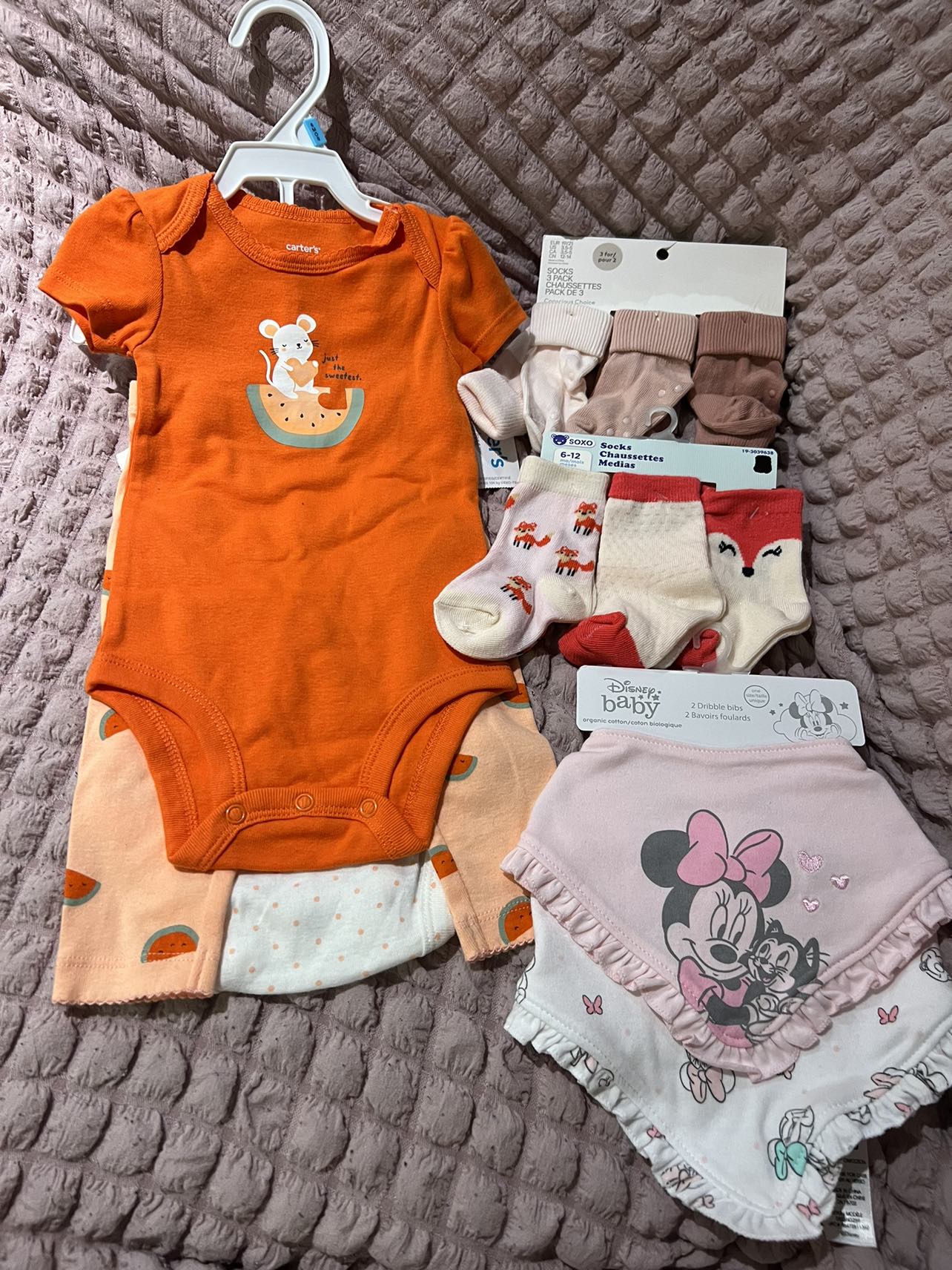 56Clothes: Onesies, Leggings Brand: Carter's Socks 6pairs & Dribble Bibs 2pcs TAKE ALL FOR $20