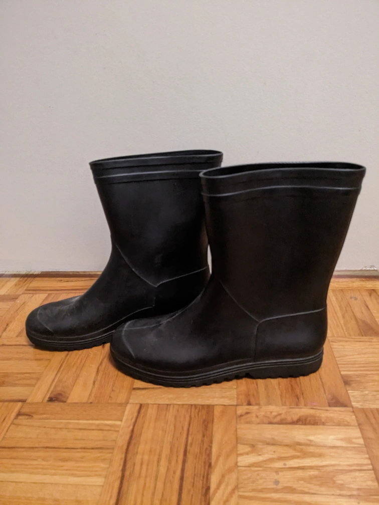 Black rain boots in size 8.