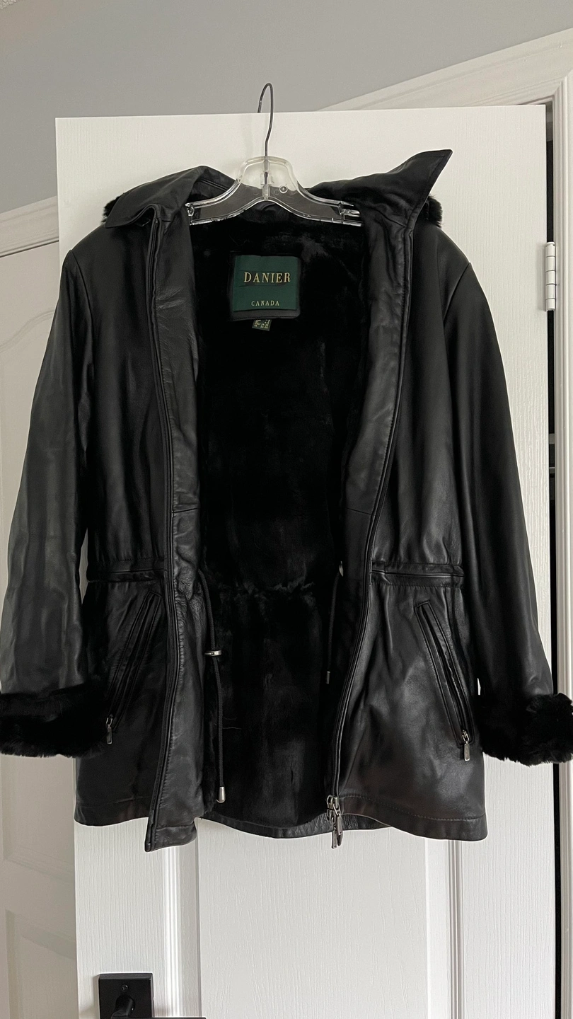 Leather jacket with a removable hood from Danier, size small. Pick up in Vaughan