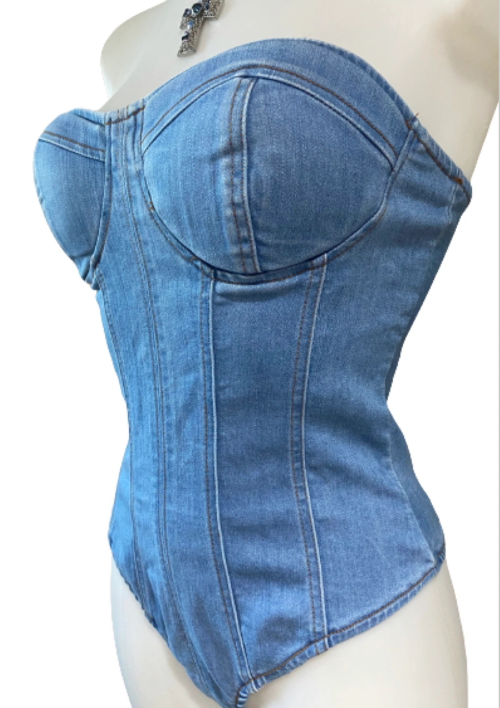 🦃 NWT! Blāshe Light Blue Denim Push up Padded Bra Bustier Body Suit Small