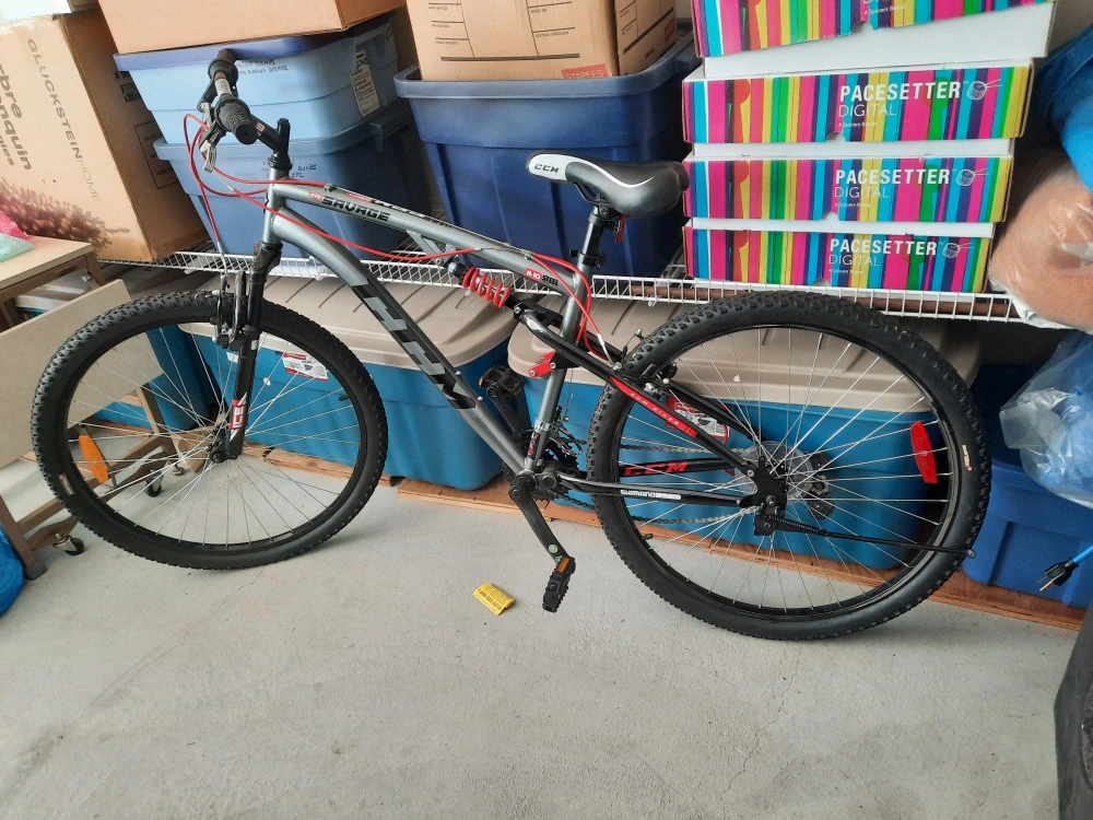 CCM Savage Dual Suspension Mountain Bike, 27.5-in from Canadian Tire. Fairly new, in great condition. Just not using it